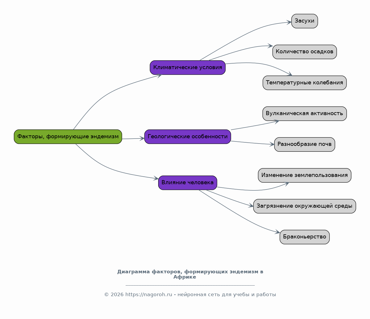 Этот раздел посвящен анализу ключевых факторов, влияющих на формирование эндемизма в Африке. Климатические условия, такие как засухи, дожди и температурные колебания, будут рассмотрены как важные факторы отбора. Геологические особенности континента, включая вулканическую активность и разнообразие почв, также играют значительную роль в создании уникальных ниш для определенных видов. Будут проанализированы и человеческие факторы, такие как изменение землепользования, загрязнение окружающей среды и браконьерство, как основные угрозы для существования эндемиков.