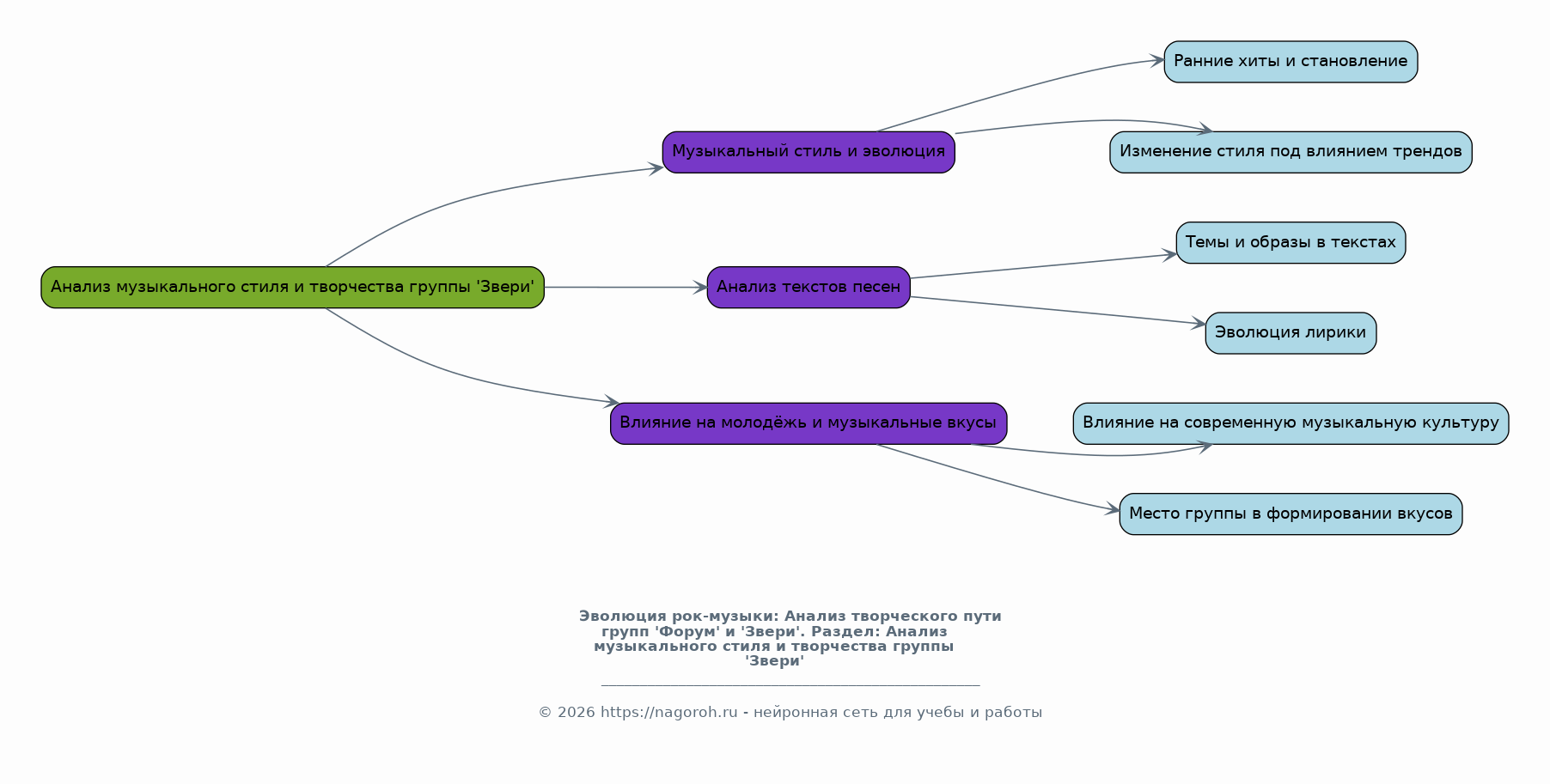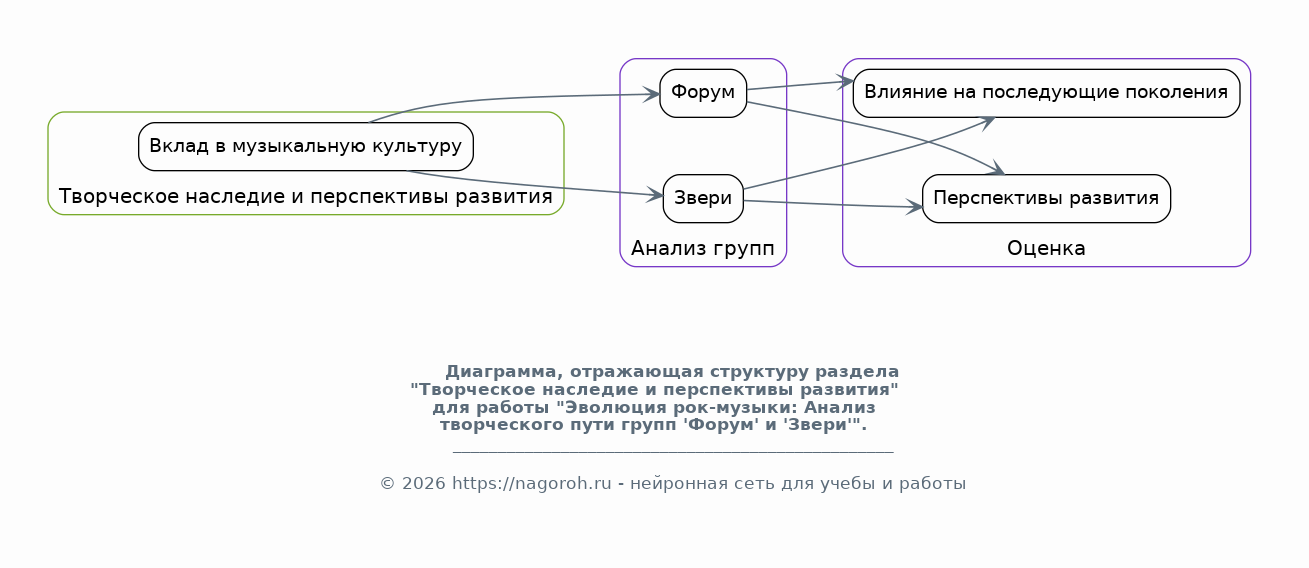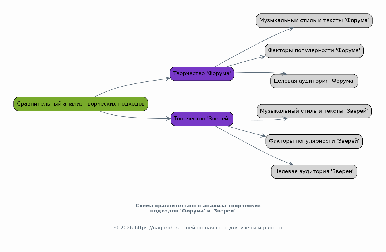 Данное исследование посвящено анализу развития рок-групп 'Форум' и 'Звери', рассматривая их вклад в отечественную музыкальную культуру. В работе будет прослежена эволюция музыкального стиля, текстов песен, а также влияние групп на формирование вкусов слушателей. Особое внимание уделено анализу ключевых этапов творческой деятельности, включая альбомы, концертные выступления и изменения в составе групп. Исследование направлено на выявление общих тенденций и уникальных особенностей в творчестве этих коллективов.