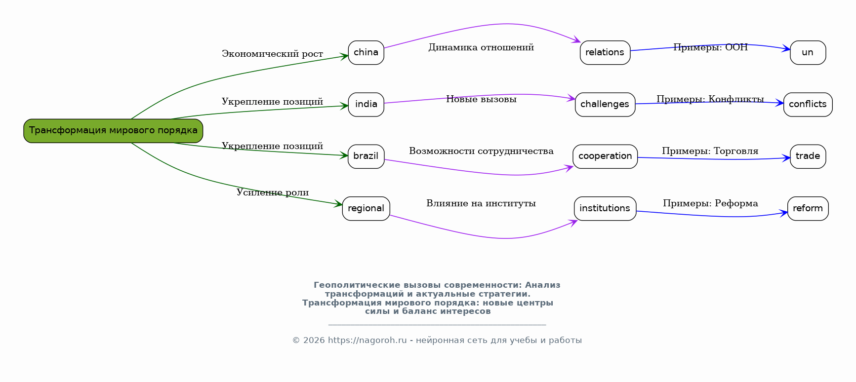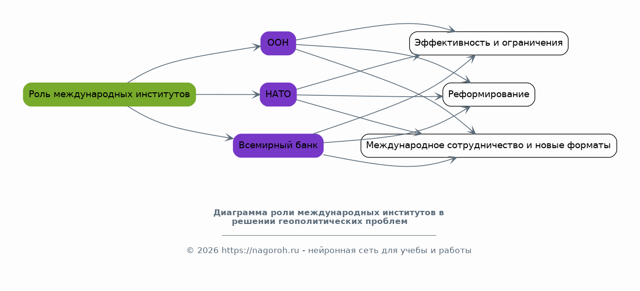 Рассмотрение роли международных организаций, таких как ООН, НАТО, Всемирный банк и других, в разрешении геополитических проблем. Анализ их эффективности, сильных и слабых сторон, а также способов адаптации к новым вызовам. Особое внимание будет уделено вопросам реформирования международных институтов, повышения их роли и влияния, а также координации усилий различных игроков для достижения целей мира и безопасности. Кроме того, будет рассмотрен вопрос о необходимости поиска новых форматов международного сотрудничества.