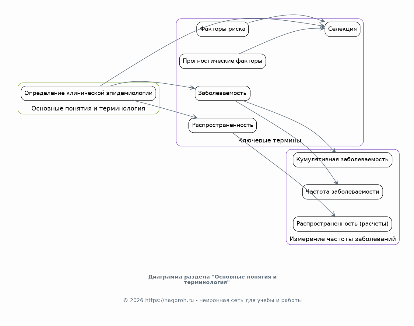 Данный раздел посвящен фундаментальным понятиям и терминологии, используемым в клинической эпидемиологии, обеспечивая основу для понимания последующих разделов. Определяются ключевые термины, такие как заболеваемость, распространенность, факторы риска, прогностические факторы и селекция. Подробно рассматриваются методы измерения частоты заболеваний, включая расчеты кумулятивной заболеваемости, частоты заболеваемости и распространенности, а также их интерпретация в контексте клинических исследований. Обсуждаются также различные виды смещений в исследованиях.