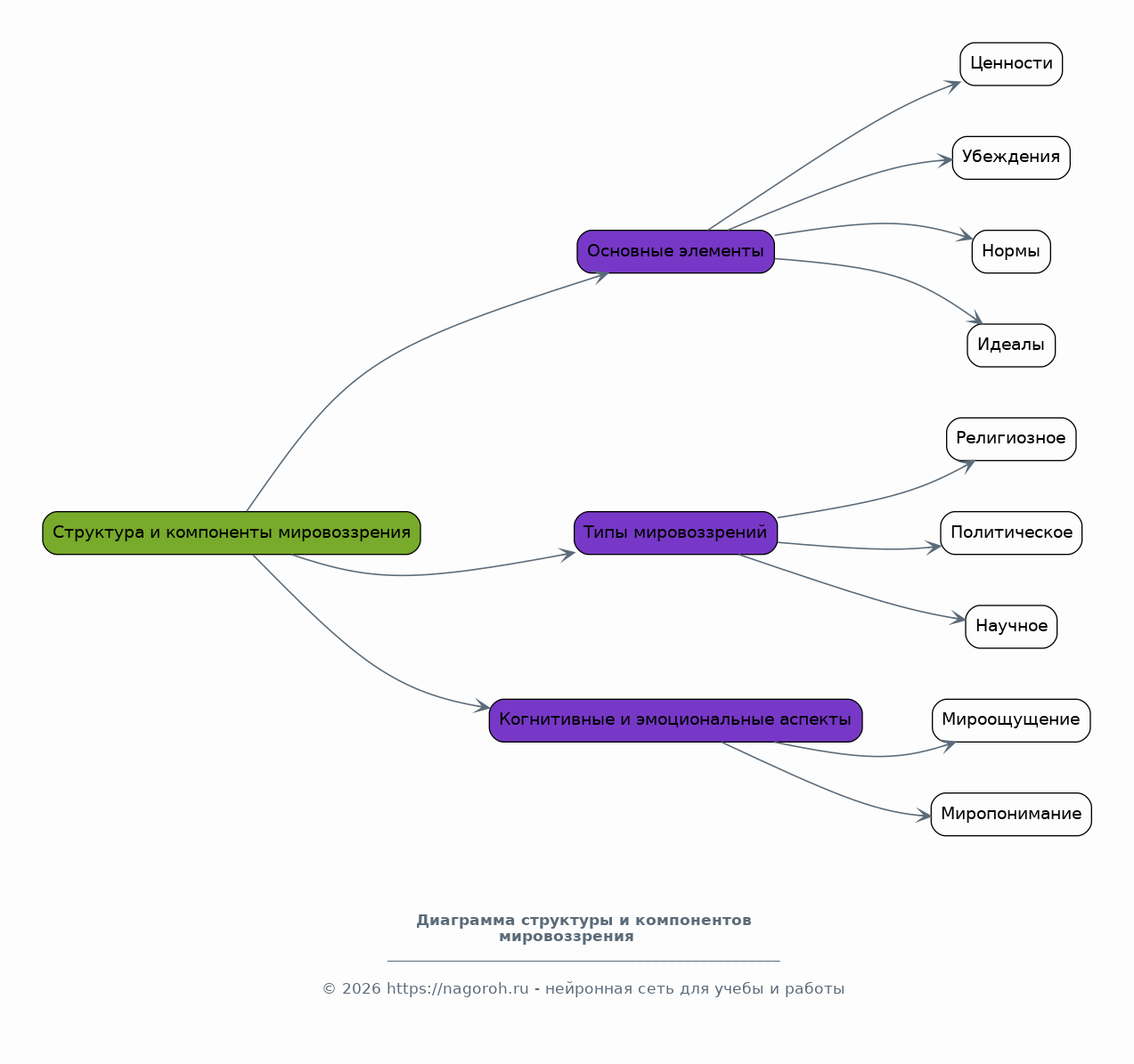 Детальное изучение структуры и основных компонентов, составляющих мировоззрение. Анализ ключевых элементов, таких как ценности, убеждения, нормы и идеалы, и их взаимосвязи. Рассмотрение различных типов мировоззрений, включая религиозные, политические и научные, с акцентом на их особенности и влияние на поведение. Изучение когнитивных и эмоциональных аспектов мировоззрения, а также способов их формирования и изменения. Будут рассмотрены основные концепции, такие как мироощущение и миропонимание.