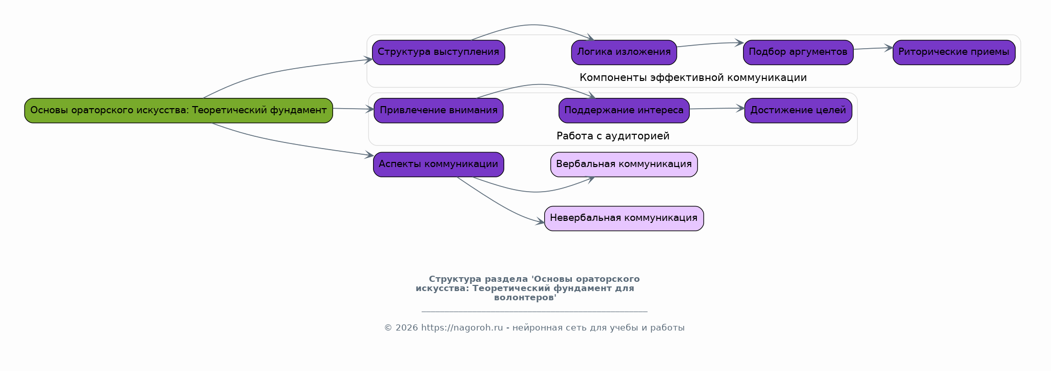 Этот раздел погружает в основы ораторского искусства, адаптированные для волонтерской деятельности. Будут рассмотрены ключевые компоненты эффективной коммуникации, такие как структура выступления, логика изложения, подбор аргументов и использование риторических приемов. Детально анализируются принципы работы с аудиторией, включая методы привлечения внимания, поддержания интереса и достижения поставленных целей. Рассматриваются аспекты вербальной и невербальной коммуникации, дающие волонтерам возможность формировать и корректировать свои выступления.