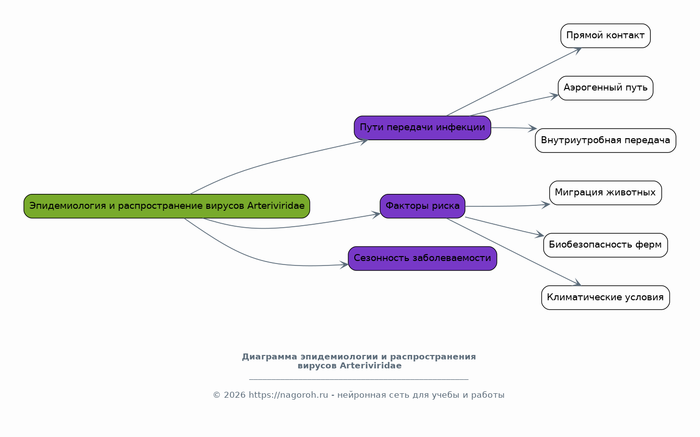 Этот раздел посвящен изучению эпидемиологии и географическому распространению вирусов семейства Arteriviridae, вызывающих заболевания у свиней. Будут проанализированы основные пути передачи инфекции, факторы риска, влияющие на распространение вирусов, и сезонность заболеваемости. Представлены данные о распространенности вирусов в различных регионах мира, а также факторы, влияющие на динамику эпидемических процессов. Будет проведена оценка роли различных факторов, включая миграцию животных, биобезопасность и климатические условия, в распространении инфекции.