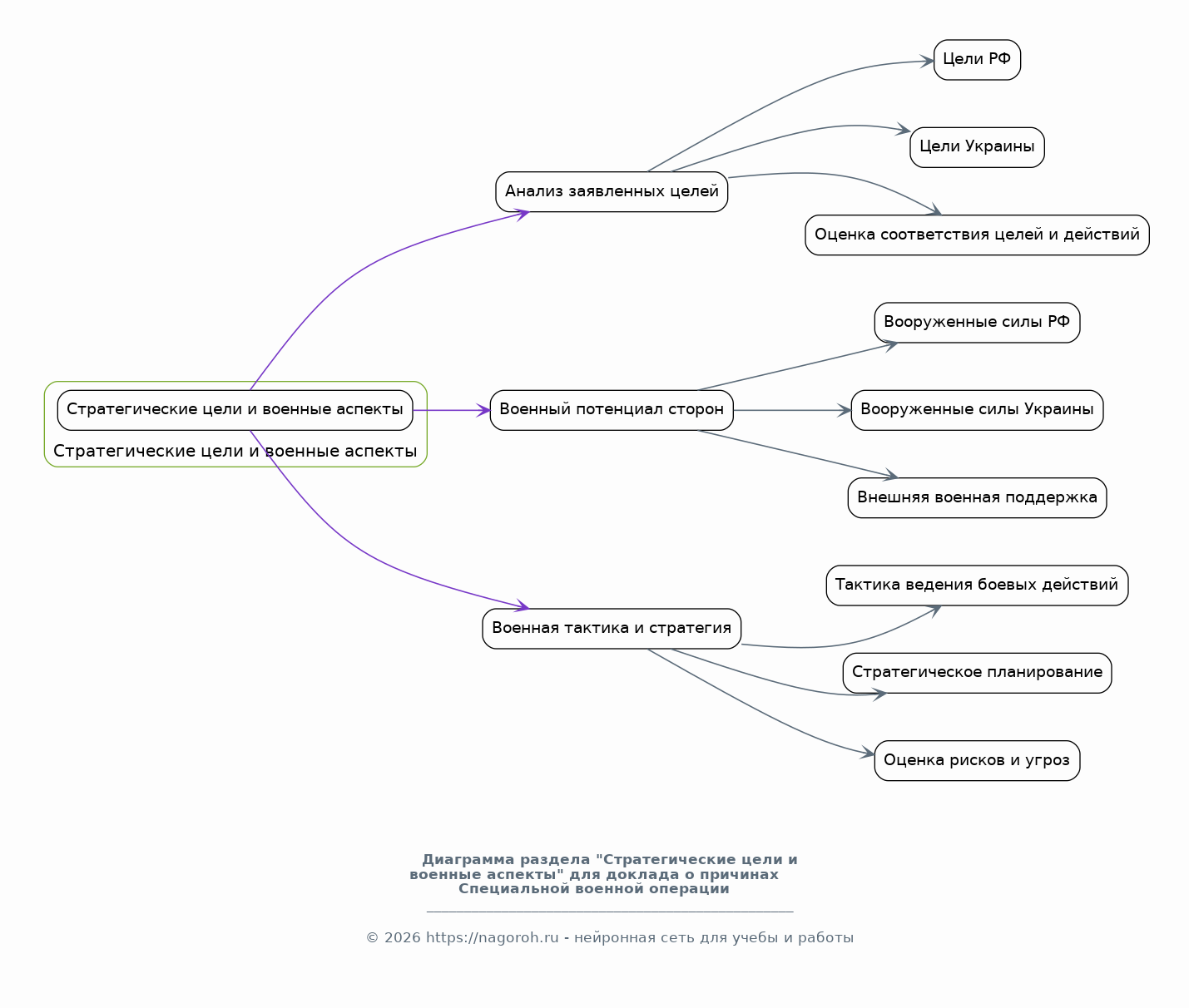 В данном разделе анализируются стратегические цели, которые, вероятно, преследовались сторонами конфликта в начале Специальной военной операции. Акцент делается на рассмотрении военных аспектов, включая анализ военной мощи сторон, используемой тактики и стратегии. Рассматриваются вопросы обороноспособности, а также потенциальные риски и угрозы, связанные с развитием конфликта. Этот раздел также включает анализ заявленных целей и задач, стоящих перед каждой из сторон, и оценку их соответствия реальным действиям.