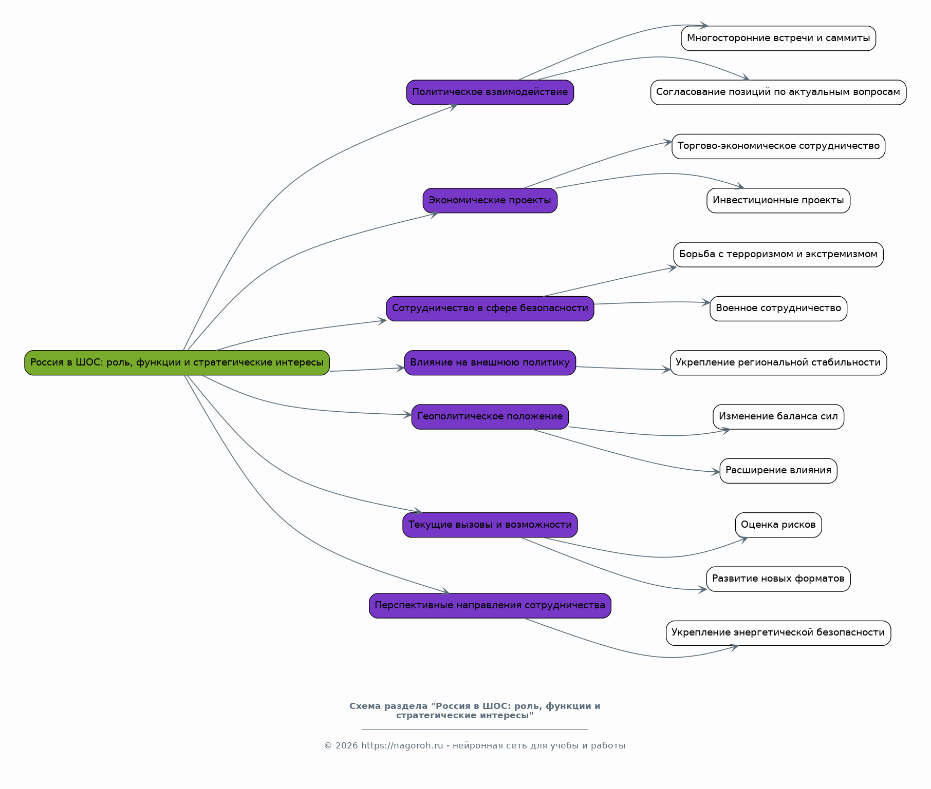 Данный доклад посвящен анализу роли Российской Федерации в рамках Шанхайской организации сотрудничества (ШОС). Он рассматривает эволюцию сотрудничества России с другими странами-членами ШОС, включая политические, экономические и вопросы безопасности. Особое внимание уделяется оценке текущего состояния, проблем и перспектив взаимодействия в различных областях, включая торговлю, инвестиции, инфраструктуру и культурный обмен. Целью исследования является определение стратегических преимуществ и вызовов, стоящих перед Россией в контексте ШОС, а также разработка рекомендаций по оптимизации ее участия.