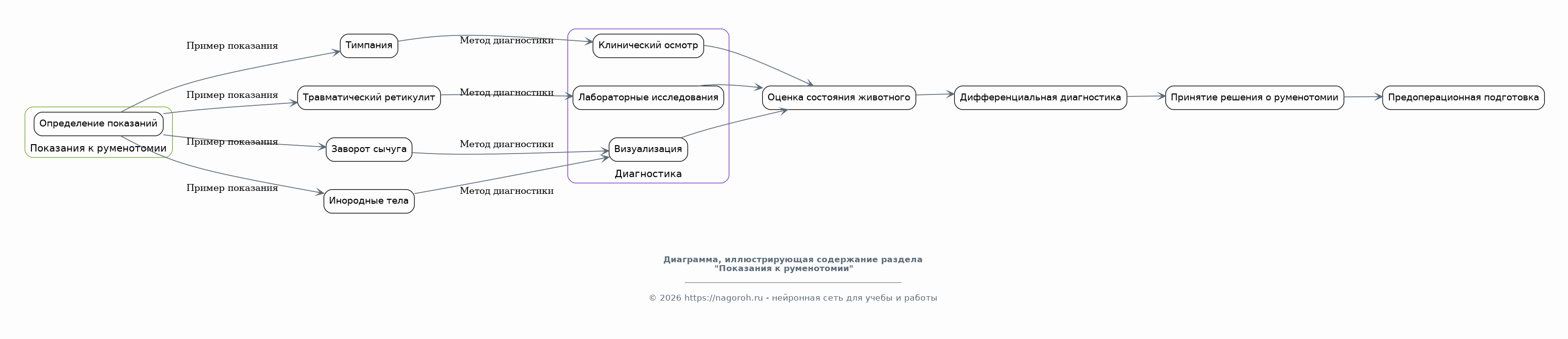Руменотомия является важным методом лечения болезней преджелудков у жвачных, таких как тимпания, травматический ретикулит и инородные тела. Своевременное и грамотное выполнение этой операции позволяет спасать жизни животных, снижать экономические потери и повышать эффективность ведения животноводства.