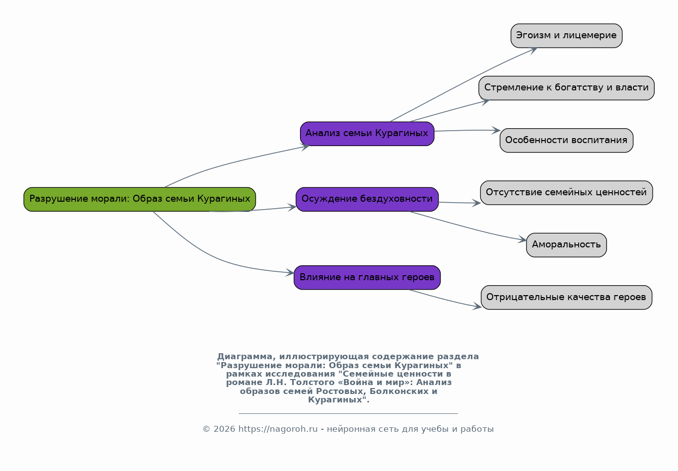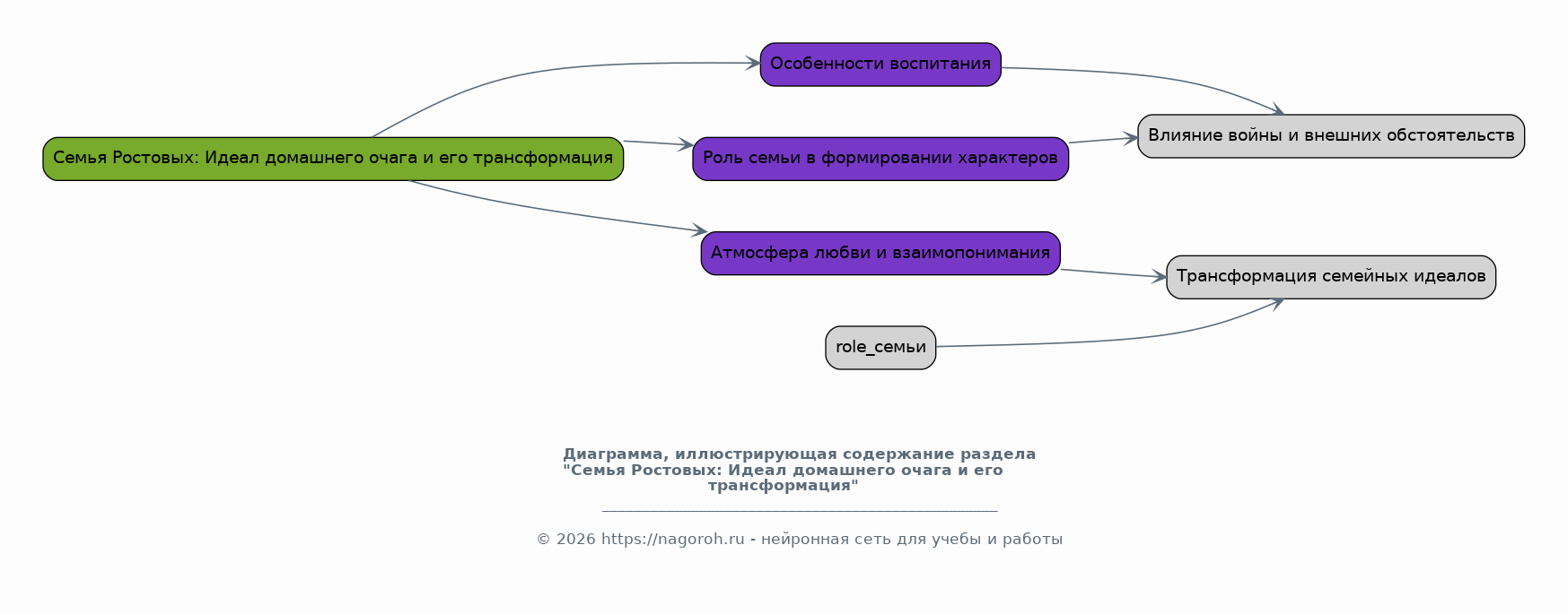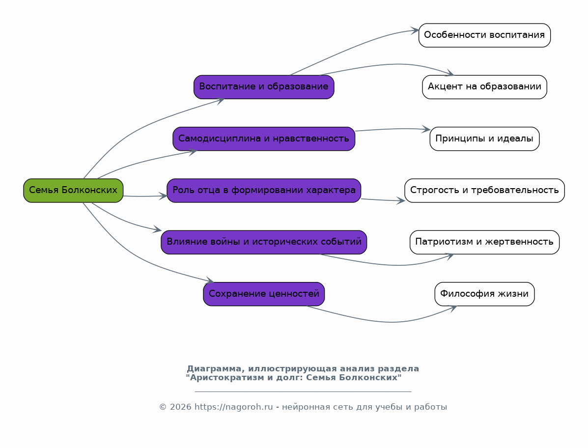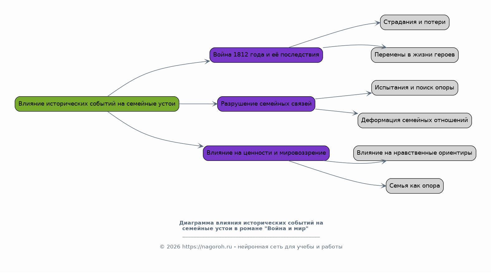 Данный раздел посвящен анализу влияния исторических событий, таких как война 1812 года, на семейные устои и взаимоотношения героев романа. Будет рассмотрено, как война разрушает семьи, привносит страдания и перемены в жизни персонажей. Анализ покажет, как война влияет на ценности и мировоззрение героев, а также на их выбор. Будет показано, как семья становится опорой в трудные времена, помогая преодолевать жизненные испытания и сохранять нравственные ориентиры, несмотря на все потрясения.