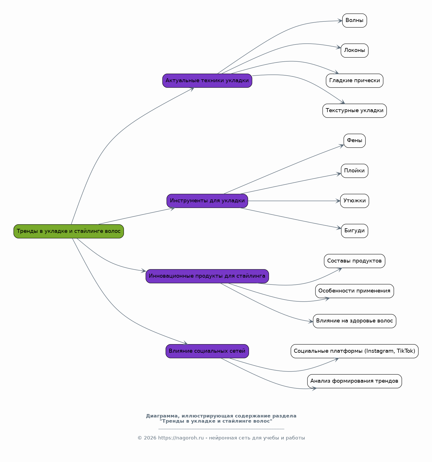 В этом разделе будет представлен обзор современных трендов в укладке и стайлинге волос. Будут рассмотрены актуальные техники укладки, такие как волны, локоны, гладкие прически, текстурные укладки и другие. Также будет уделено внимание используемым инструментам для укладки, включая фены, плойки, утюжки, бигуди и другие. Будут рассмотрены инновационные продукты для стайлинга, их составы, особенности применения и влияние на здоровье волос. Будет проанализировано влияние социальных сетей на формирование трендов.