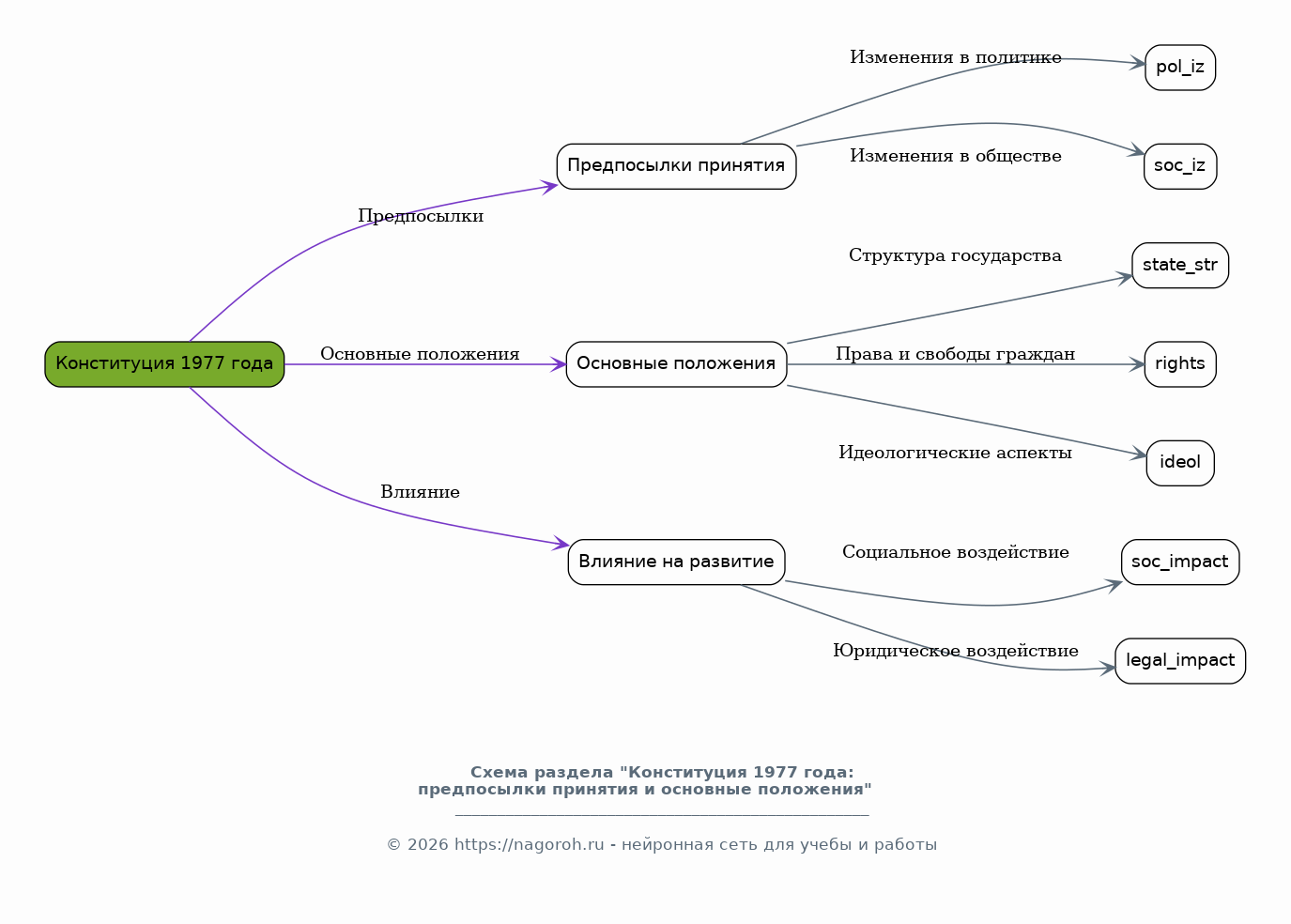 В данном разделе исследуются предпосылки принятия Конституции 1977 года, включая изменения в политической и социальной сферах Советского Союза. Анализируются факторы, обусловившие необходимость пересмотра Основного закона, а также цели, поставленные перед разработчиками новой Конституции. Рассматриваются основные положения Конституции 1977 года, включая структуру государства, права и свободы граждан, а также идеологические аспекты. Будет дана оценка влияния данной Конституции на дальнейшее развитие советского общества.