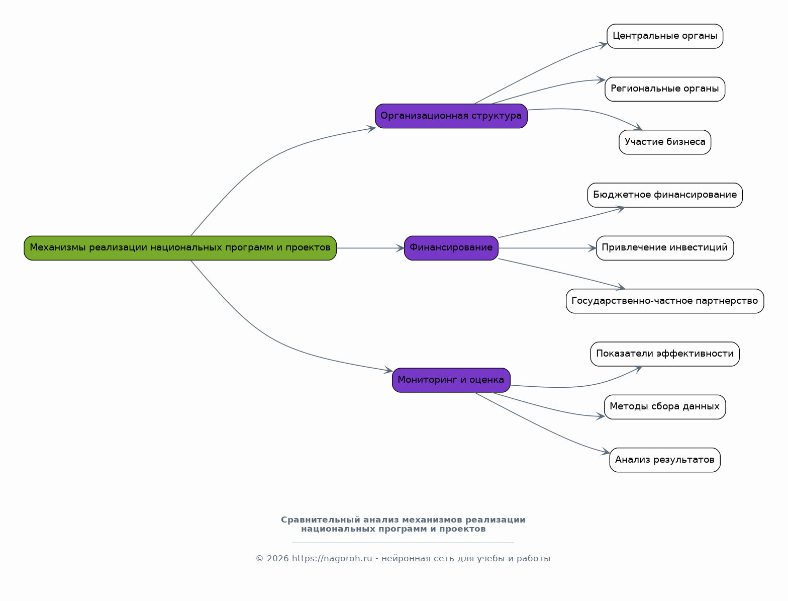 Этот раздел посвящен анализу механизмов реализации национальных программ и проектов, включая организационную структуру, способы финансирования, систему мониторинга и оценки. Будет рассмотрен опыт различных стран в применении различных инструментов и подходов. Особое внимание будет уделено сравнению механизмов реализации программ и проектов, выявлению их сильных и слабых сторон, а также факторов, влияющих на успешность реализации. Данный анализ позволит выявить лучшие практики и предложить рекомендации по совершенствованию механизмов.