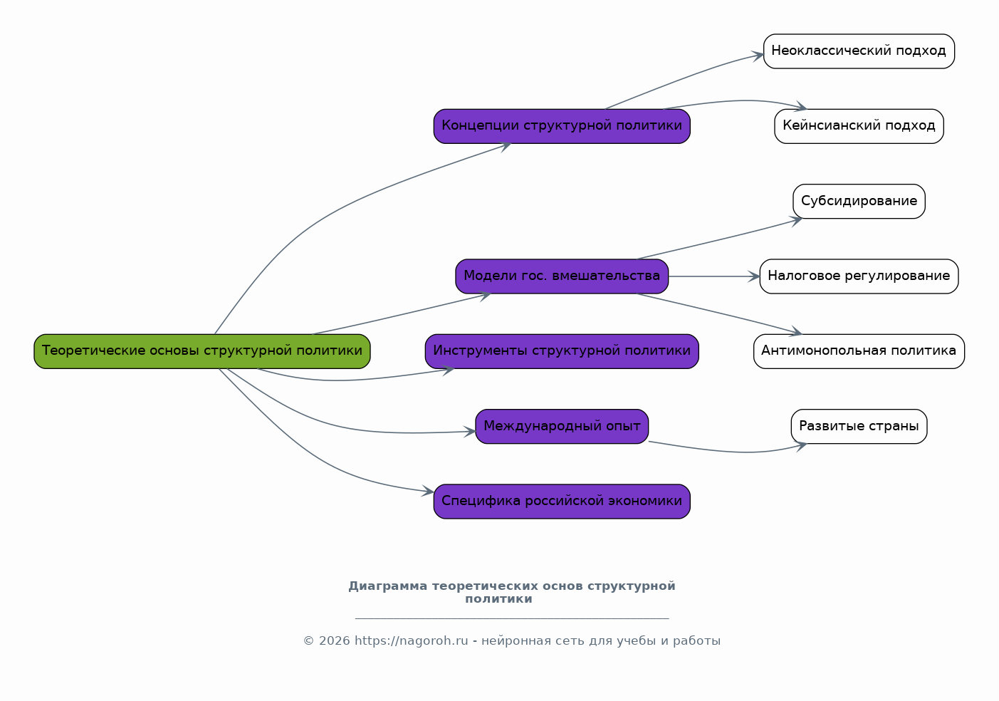 В этом разделе будет дан теоретический обзор основных концепций структурной политики, включая неоклассические и кейнсианские подходы. Рассмотрены различные модели государственного вмешательства в экономику, а также инструменты структурной политики, такие как субсидирование, налоговое регулирование и антимонопольная политика. Проанализированы международные примеры успешной реализации структурной политики, с акцентом на опыт развитых стран. Будет также обозначена специфика российской экономики, влияющая на выбор и адаптацию инструментов структурной политики.