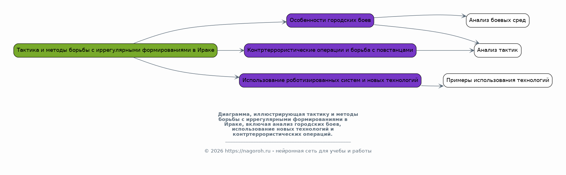 Данный раздел посвящен анализу тактики и методов, применявшихся в Ираке, включая особенности городских боев, использование роботизированных систем и новых технологий. Рассматриваются различные стратегии и тактики, используемые в условиях асимметричного конфликта, с акцентом на контртеррористические операции и борьбу с повстанцами. Анализируются сильные и слабые стороны различных военных подходов, а также влияние политических и социальных факторов на ход боевых действий. Особое внимание уделяется урокам, извлеченным из иракского опыта.