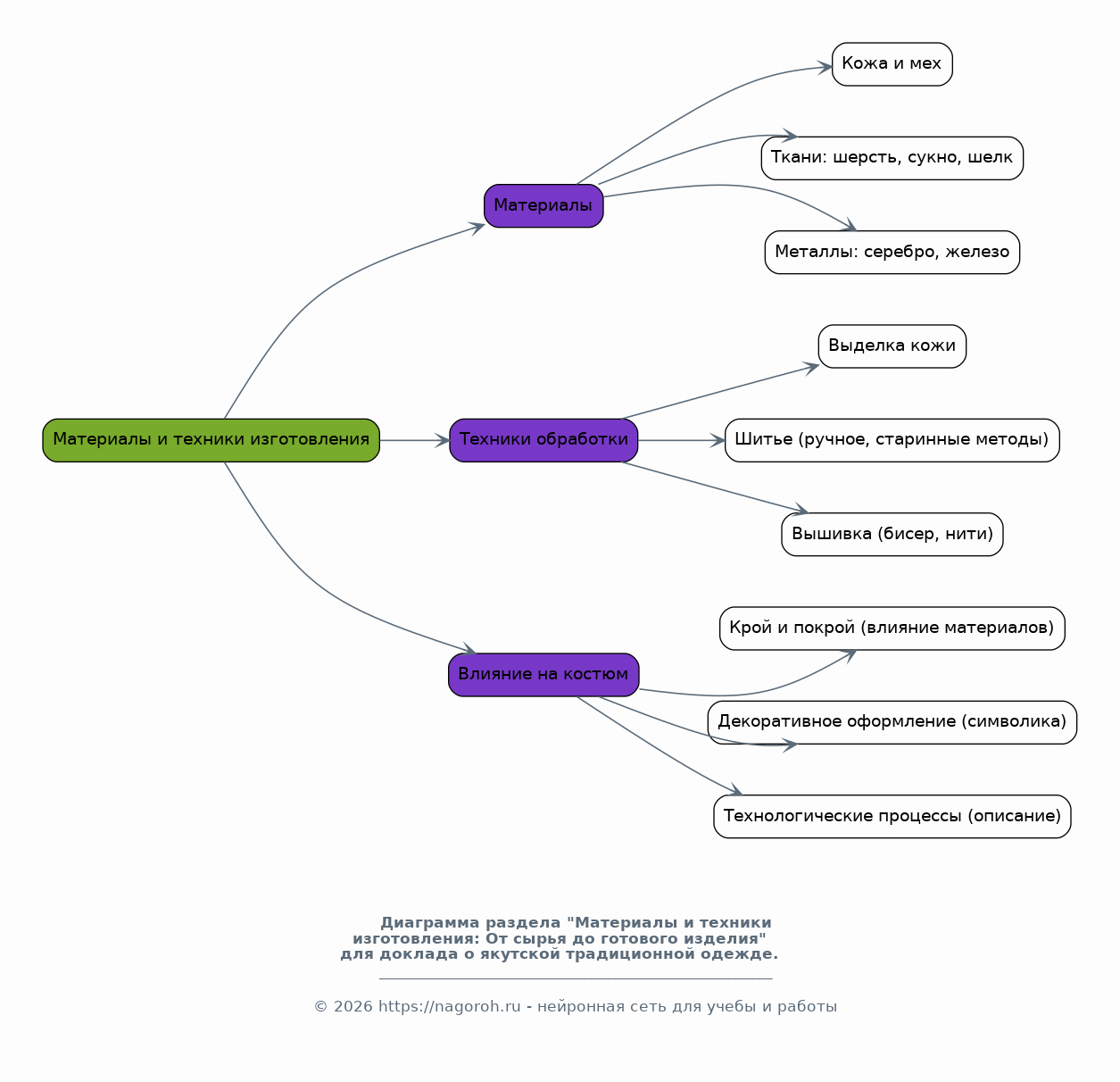 В этом разделе будет представлен подробный анализ материалов, используемых для изготовления якутской одежды и украшений: кожа, мех, ткани, металл, бисер и т.д. Будут рассмотрены традиционные техники обработки этих материалов, такие как выделка кожи, шитье, вышивка, плетение и ковка. Особое внимание будет уделено влиянию материалов и техник на особенности кроя и декоративного оформления костюма, а также их символическому значению. Будет представлено описание технологических процессов, используемых якутами.