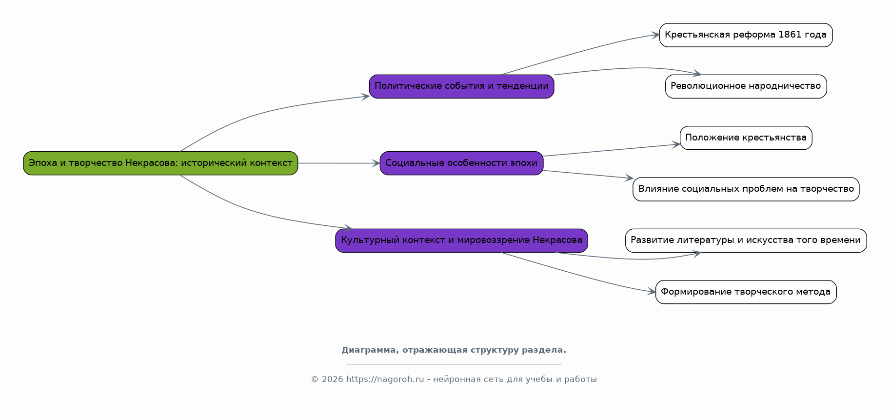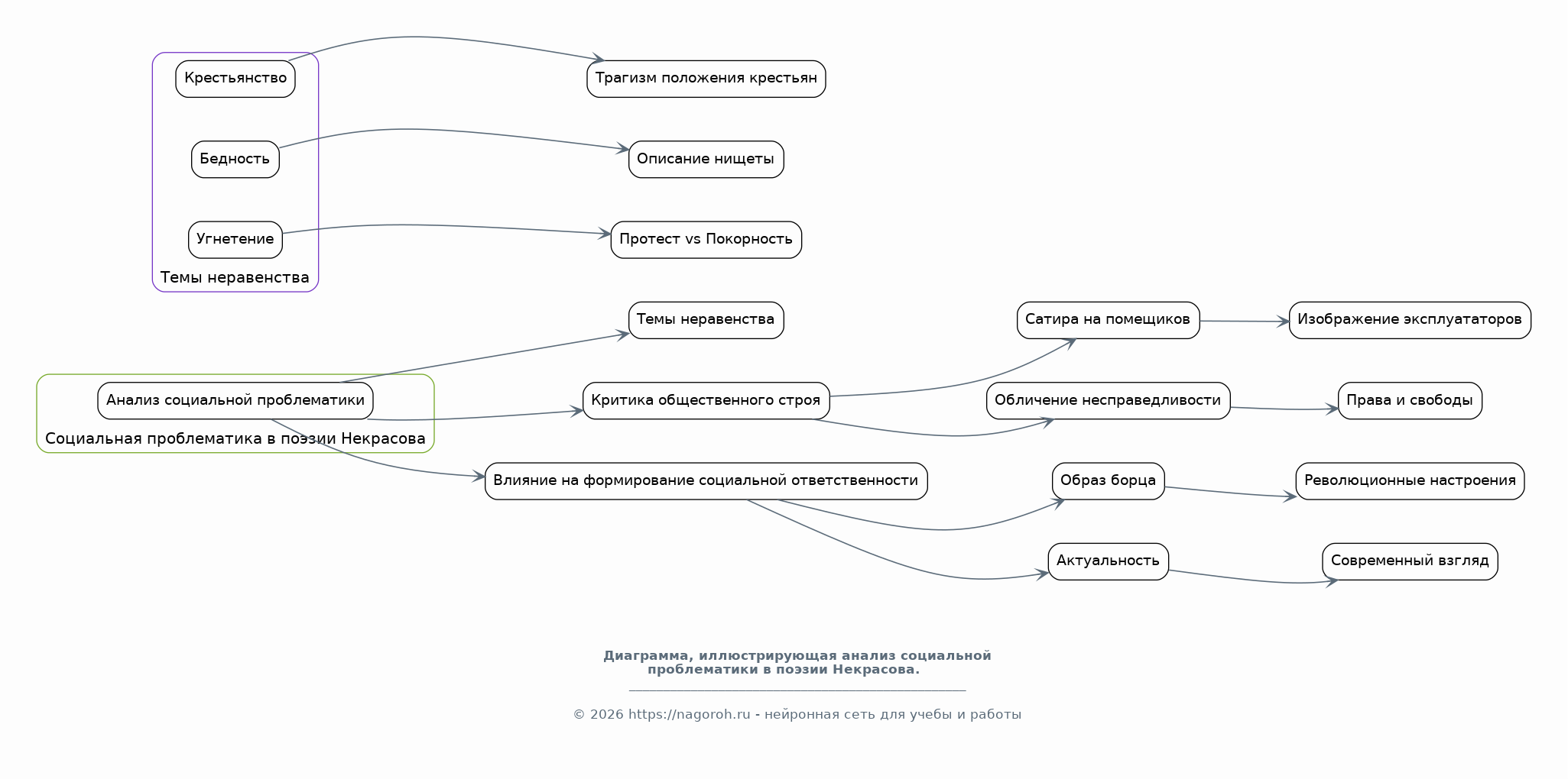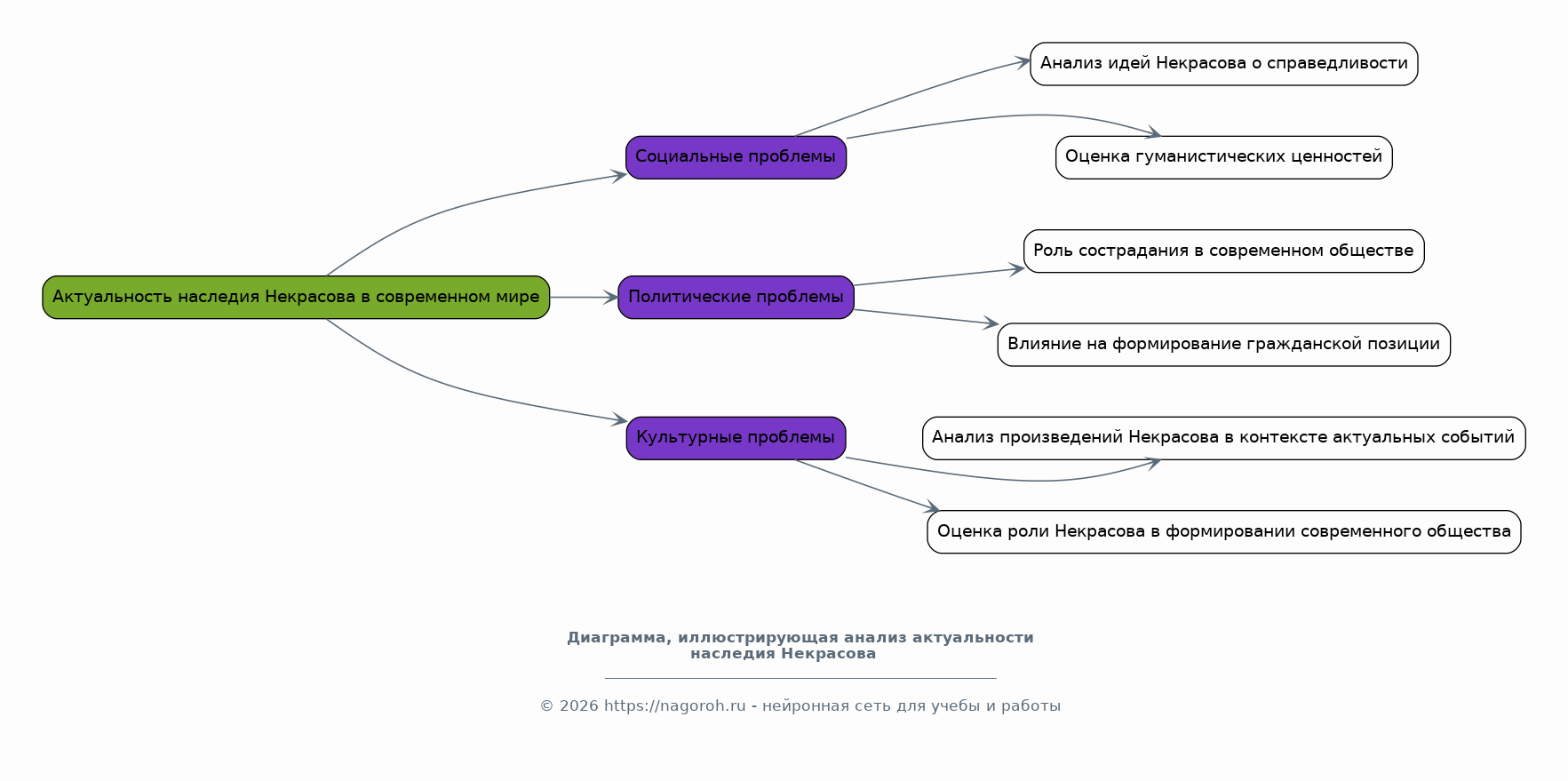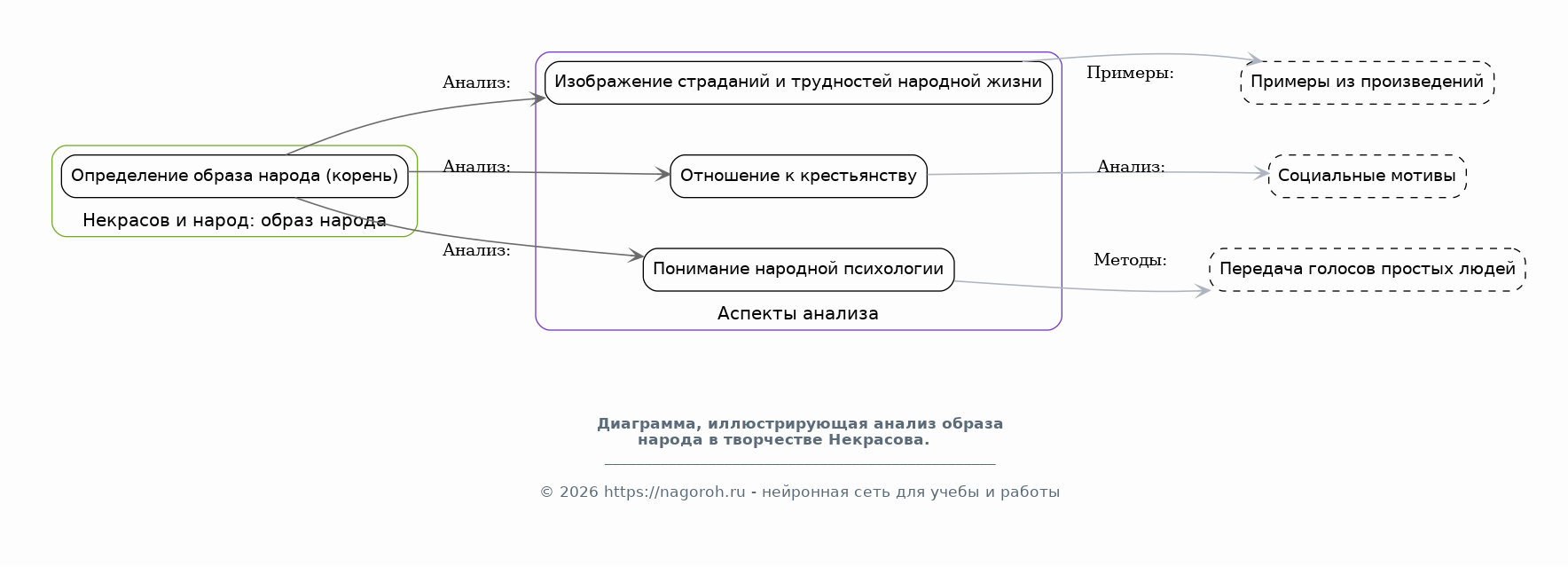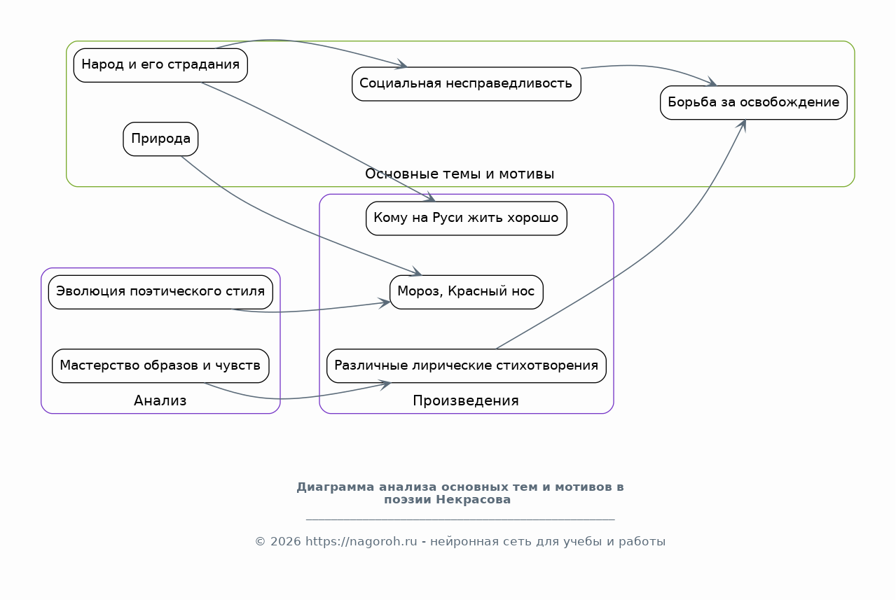Данный исследовательский проект посвящен анализу и оценке роли Николая Некрасова в формировании российской культуры и его значимости для современного общества. В рамках исследования будет рассмотрено влияние творчества Некрасова на развитие русской литературы, его вклад в развитие социальных и политических взглядов, а также его влияние на формирование гуманистических ценностей. Особое внимание будет уделено актуальности поэзии Некрасова в контексте современных социальных проблем, таких как неравенство, бедность и несправедливость. Проект предполагает комплексный анализ произведений Некрасова, учитывая исторический, культурный и социальный контекст их создания и восприятия. Будут исследованы основные темы и мотивы его творчества, такие как народ, природа, любовь и страдание, а также способы их выражения. Результаты исследования позволят лучше понять творческое наследие Некрасова и его влияние на формирование современной российской идентичности, а также выявить его ценность для решения актуальных социальных проблем.