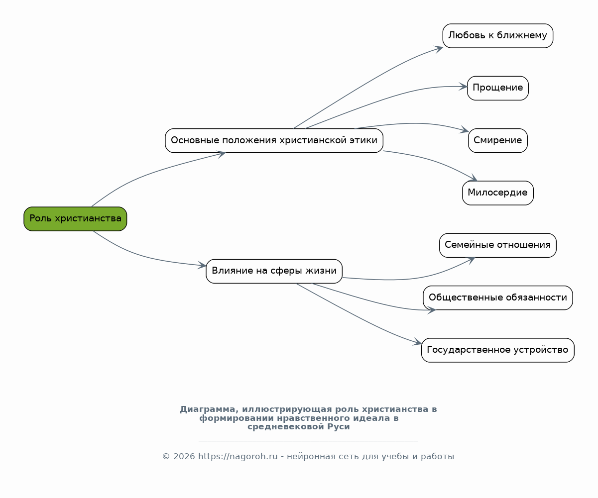 Данный исследовательский проект посвящен анализу эволюции нравственного идеала в контексте средневековой Руси, охватывая период с X по XV века. Исследование предполагает комплексный анализ философских, религиозных и социокультурных факторов, оказавших влияние на формирование моральных ценностей и норм поведения. Особое внимание уделяется выявлению доминирующих этических концепций, заимствованных из византийской традиции, а также развитию оригинальных представлений о добре и зле, справедливости, милосердии и долге в условиях специфического исторического развития, включая влияние языческого наследия и становление христианства. Проект подразумевает изучение основных источников, таких как летописи, жития святых, поучения, юридические документы и произведения изобразительного искусства, для выявления ключевых элементов нравственного идеала и их трансформации в различные периоды средневековья. Анализируются факторы, влияющие на идеалы. Рассматривается взаимодействие между общественными структурами, религиозными институтами и духовными лидерами в процессе формирования и поддержания нравственных норм. В заключительной части будет предложено понимание о влиянии нравственного идеала на общественные отношения, культурное развитие и политические процессы в средневековой Руси.