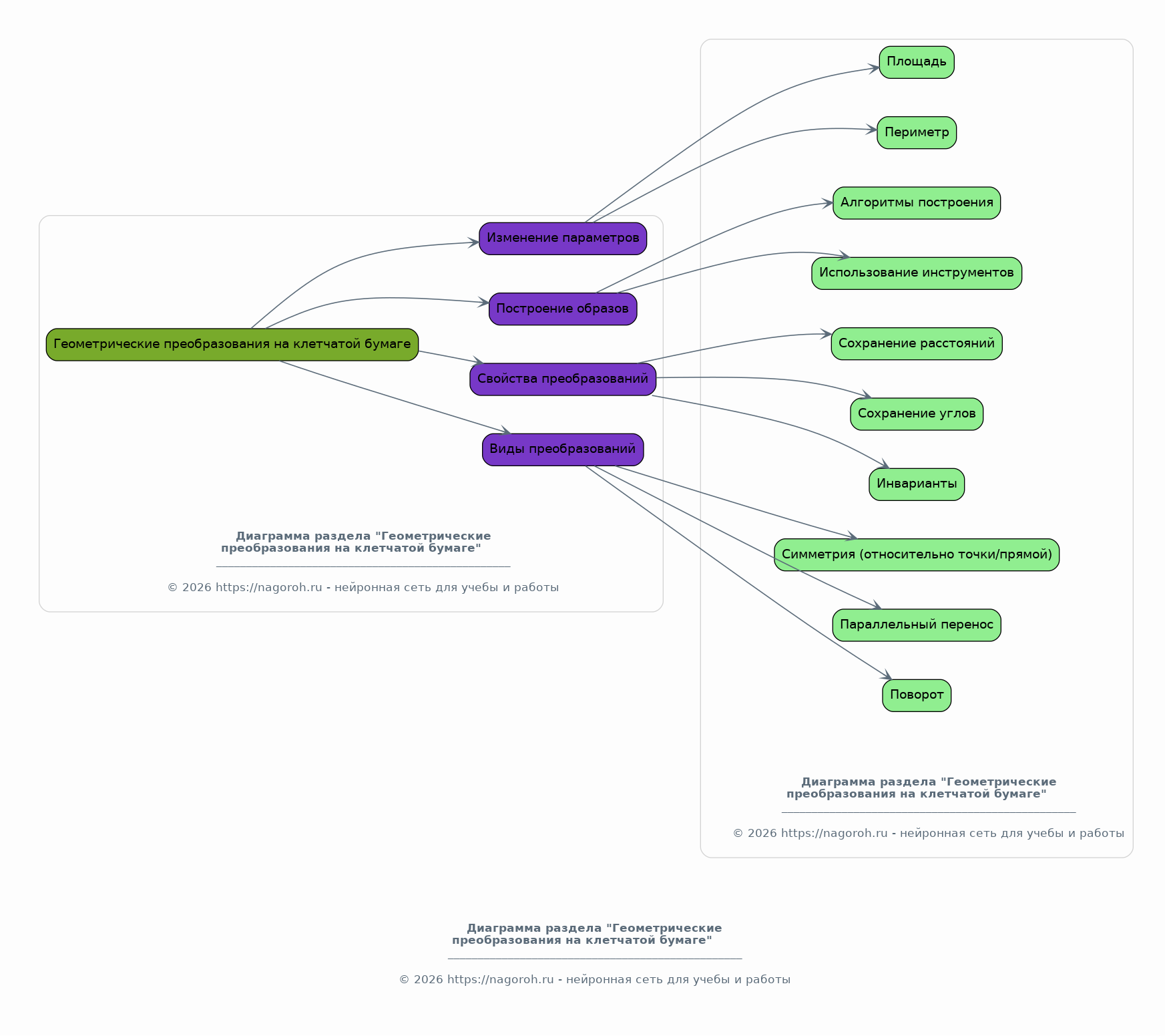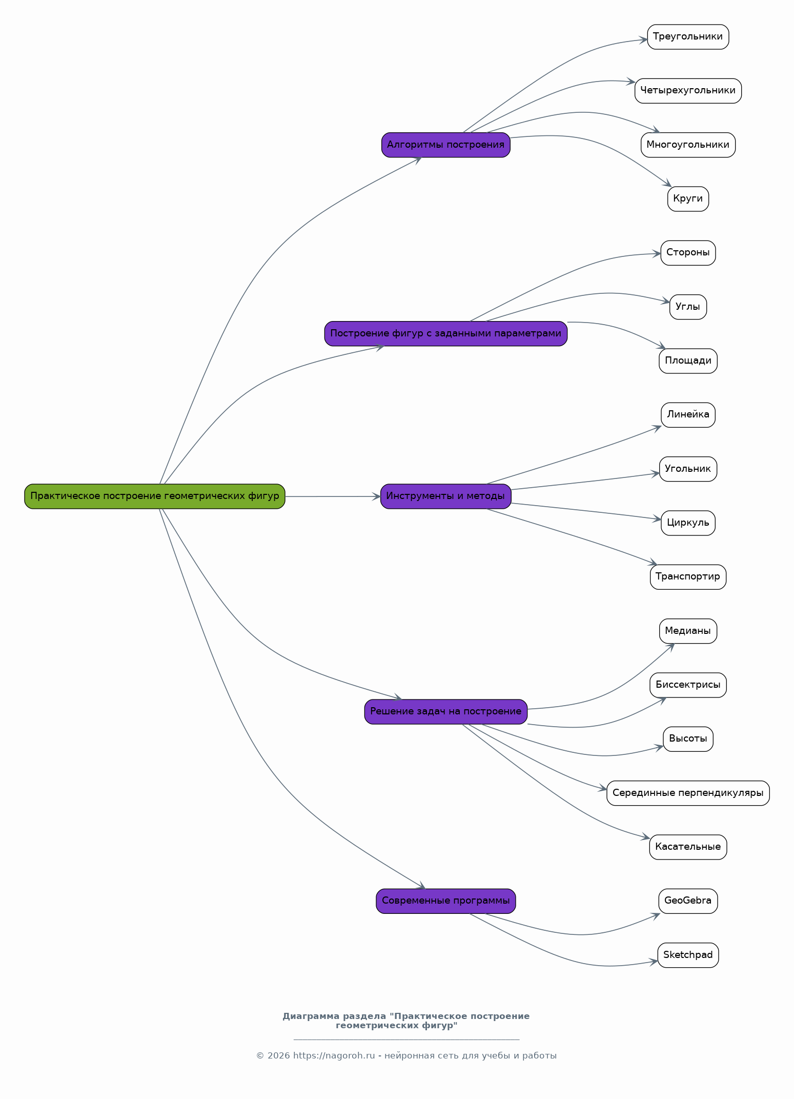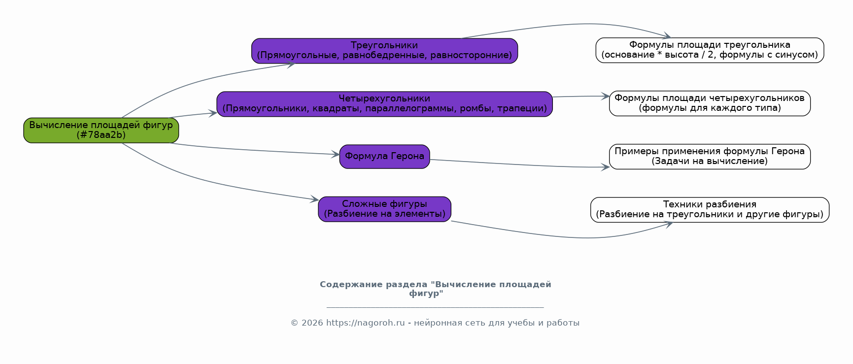 Рассмотрение основных геометрических понятий: точка, прямая, отрезок, луч, угол. Изучение видов углов (острые, тупые, прямые, развернутые). Понятие о параллельных и перпендикулярных прямых. Определение многоугольников и их классификация. Свойства треугольников, четырехугольников, многоугольников. Рассмотрение понятий периметра и площади геометрических фигур. Теоретический обзор формул для вычисления периметров и площадей. Изучение свойств различных геометрических фигур, таких как треугольники, четырехугольники (параллелограммы, ромбы, прямоугольники, квадраты, трапеции) и многоугольники, их классификация. Перечисление основных теорем и свойств, используемых в геометрии.