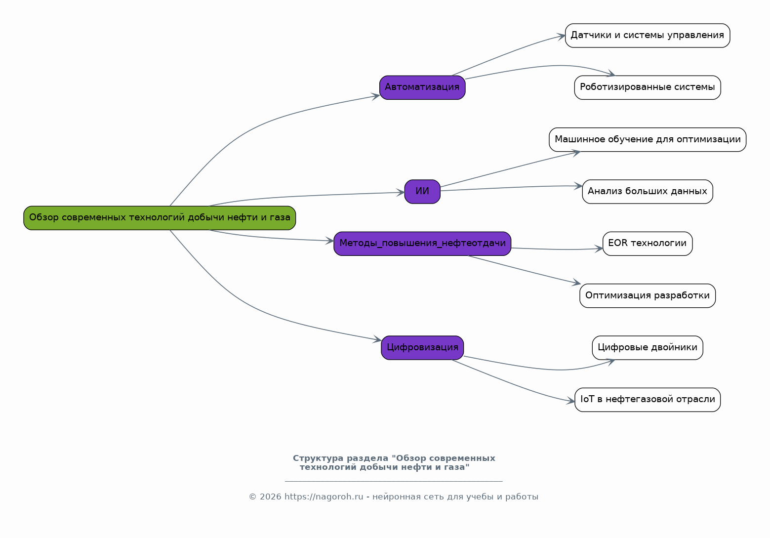 Данный исследовательский проект посвящен анализу и перспективам внедрения инновационных технологий в процесс добычи нефти и газа. Проект охватывает широкий спектр современных методов, включая автоматизацию, искусственный интеллект, методы повышения нефтеотдачи и цифровизацию, оценивая их потенциал для повышения эффективности, снижения затрат и минимизации экологического воздействия. В рамках исследования будет проведен детальный обзор существующих технологий, их технических характеристик, экономической целесообразности и практического применения в различных условиях разработки месторождений. Особое внимание будет уделено анализу барьеров на пути внедрения инноваций, таких как финансовые ограничения, технологические сложности и нормативные ограничения, а также разработке рекомендаций по их преодолению. Исследование включает в себя анализ конкретных кейсов успешного применения инновационных технологий, опыт ведущих нефтегазовых компаний и перспективные направления развития отрасли. Проект предполагает использование методологии системного анализа, статистического анализа данных и экспертных оценок для формирования обоснованных выводов и предложений.