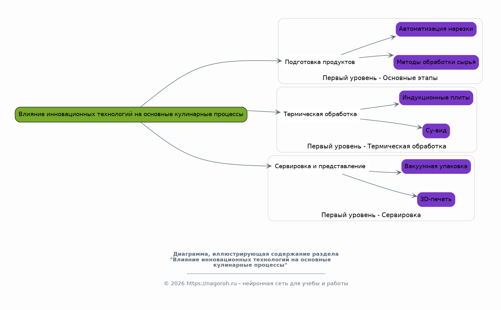Данный исследовательский проект посвящен изучению влияния инновационных технологий на процессы приготовления пищи, организацию работы на кухне и общую эффективность кулинарного производства. Актуальность исследования обусловлена стремительным развитием технологического прогресса и его проникновением во все сферы человеческой деятельности, включая гастрономию. В рамках проекта будут рассмотрены различные аспекты применения современных технологий, таких как автоматизированные системы приготовления, робототехника, искусственный интеллект, сенсорные технологии и облачные сервисы, в контексте оптимизации кулинарных процессов. Особое внимание будет уделено анализу влияния этих технологий на качество, безопасность и экономическую эффективность производства. Проект предполагает проведение теоретического анализа существующих научных исследований, обзоров и практических примеров внедрения инноваций в кулинарии, а также проведение эмпирических исследований в формате эксперимента или наблюдения. Результаты проекта будут полезны для представителей пищевой индустрии, студентов кулинарных направлений, а также всех, кто интересуется применением новых технологий в кулинарной сфере, открывая новые возможности и перспективы развития.