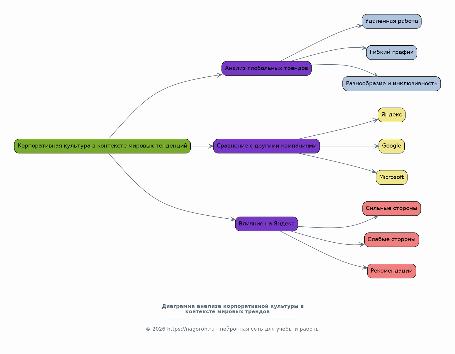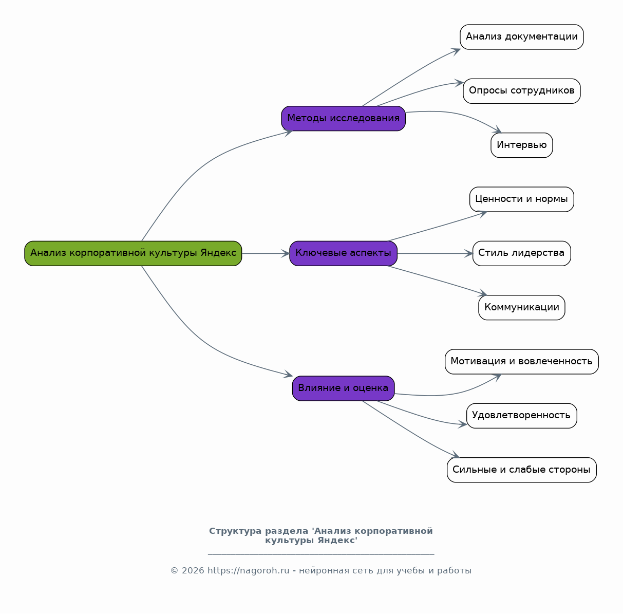 Данный исследовательский проект представляет собой комплексный анализ корпоративной культуры компании Яндекс, одной из ведущих технологических компаний в России и мире. В рамках работы будет проведено глубокое исследование различных аспектов корпоративной культуры, включая ценности, нормы, традиции и практики, которые формируют уникальную идентичность компании. Особое внимание будет уделено влиянию корпоративной культуры на эффективность работы, инновационность и привлекательность для сотрудников. Работа будет включать в себя изучение существующих исследований, а также анализ данных, полученных из различных источников, таких как интервью с сотрудниками, изучение публичных документов и анализ новостных публикаций. В результате будет подготовлен аналитический доклад и презентация, предназначенные для ознакомления с основными результатами исследования и выявления тенденций в развитии корпоративной культуры Яндекс.
