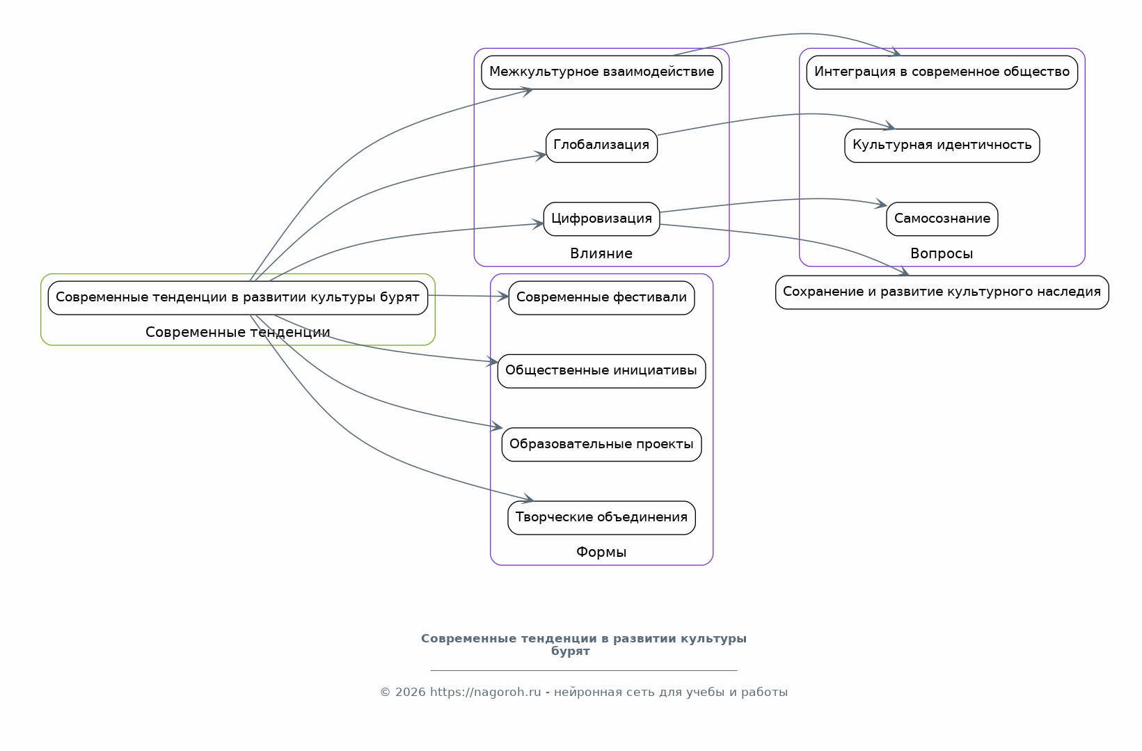 Данный исследовательский проект посвящен всестороннему изучению культуры и традиций бурятского народа, охватывая широкий спектр аспектов: от древних корней и исторических этапов формирования до современных проявлений и вызовов. В работе будет рассмотрена эволюция традиционных верований, таких как шаманизм и буддизм, а также их влияние на мировоззрение и повседневную жизнь бурят. Особое внимание будет уделено роли языка, литературы и искусства в сохранении и передаче культурного наследия. Проект включает анализ традиционных ремесел, музыки, танца и костюмов, рассматривая их значение в современном бурятском обществе. Исследование также затронет вопросы сохранения культурной идентичности в условиях глобализации, межкультурного взаимодействия и влияния современных технологий. В рамках проекта будут изучены современные тенденции в развитии бурятской культуры, включая фестивали, общественные инициативы и образовательные проекты, направленные на популяризацию и сохранение культурного наследия. Анализ будет основан на различных методологических подходах, включая исторический, этнографический и социологический анализ, что позволит получить комплексное представление о культурной динамике бурятского народа.