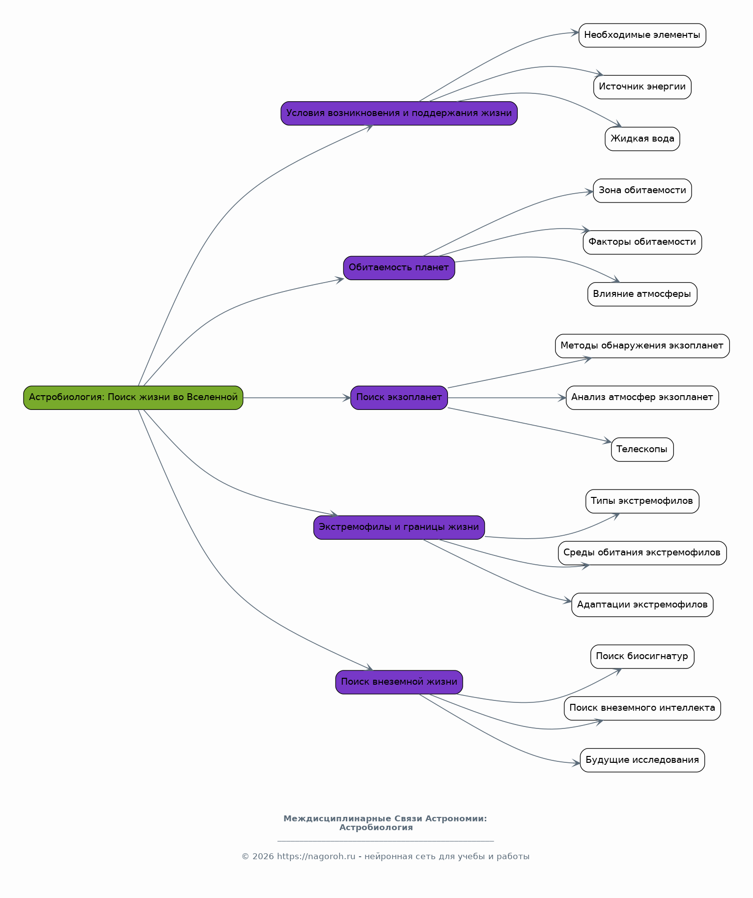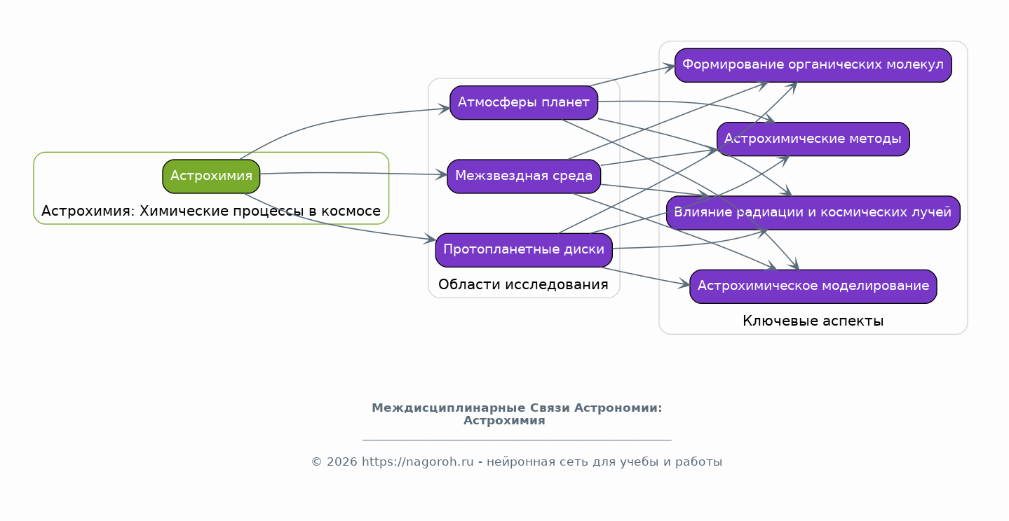 Данный исследовательский проект направлен на глубокое изучение междисциплинарных связей, возникающих на стыке астрономии с химией, физикой и биологией. Проект предполагает комплексный анализ, включающий как теоретические аспекты, так и практические исследования. Основной акцент будет сделан на выявлении ключевых механизмов взаимодействия, влияющих на формирование и эволюцию космических объектов, а также на понимание роли этих взаимодействий в контексте возникновения и развития жизни во Вселенной. В рамках проекта будут рассмотрены вопросы астрохимических процессов, физики космических явлений и астробиологических концепций. Будут исследованы конкретные примеры, отражающие влияние астрономических факторов на химические реакции в космосе, физические процессы в звездах и галактиках, а также условия, необходимые для зарождения и поддержания жизни. Особое внимание уделяется применению современных методов исследования, включая компьютерное моделирование и анализ данных, полученных с помощью передовых телескопов и обсерваторий. Результаты проекта будут способствовать расширению знаний о Вселенной и улучшению понимания места человека в ней.