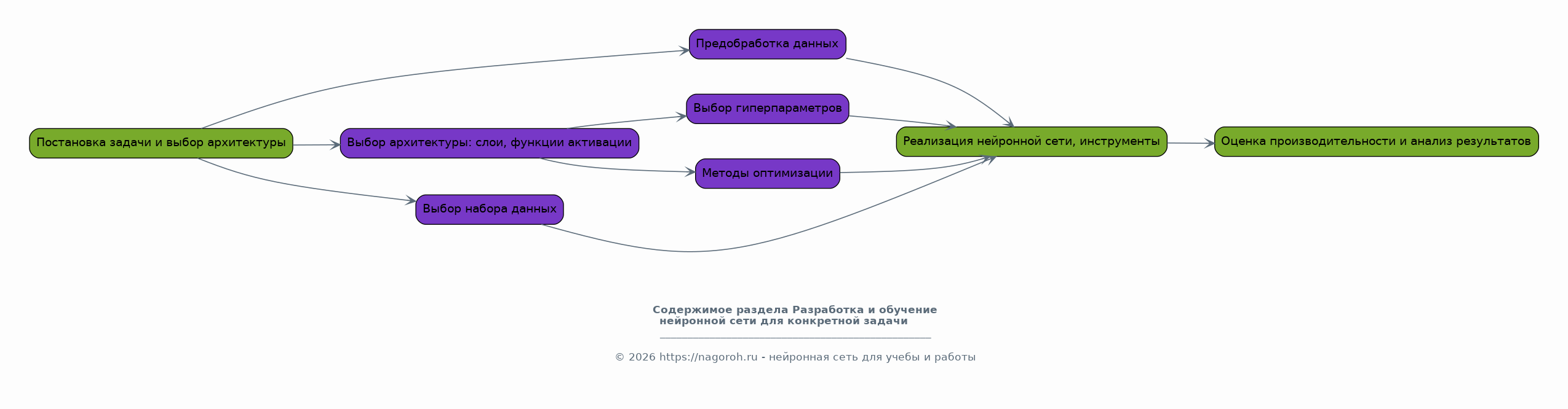 Обзор архитектур нейронных сетей: однослойные перцептроны, многослойные перцептроны, сверточные нейронные сети (CNN), рекуррентные нейронные сети (RNN), автоэнкодеры и генеративно-состязательные сети (GAN). Рассмотрение принципов обучения нейронных сетей: методы обратного распространения ошибки, оптимизационные алгоритмы, регуляризация. Анализ математического аппарата, лежащего в основе нейронных сетей, включая функции активации, функции потерь и метрики оценки качества. Подробное обсуждение ключевых концепций и терминологии, связанных с нейронными сетями, для обеспечения понимания основы для дальнейшего изучения.