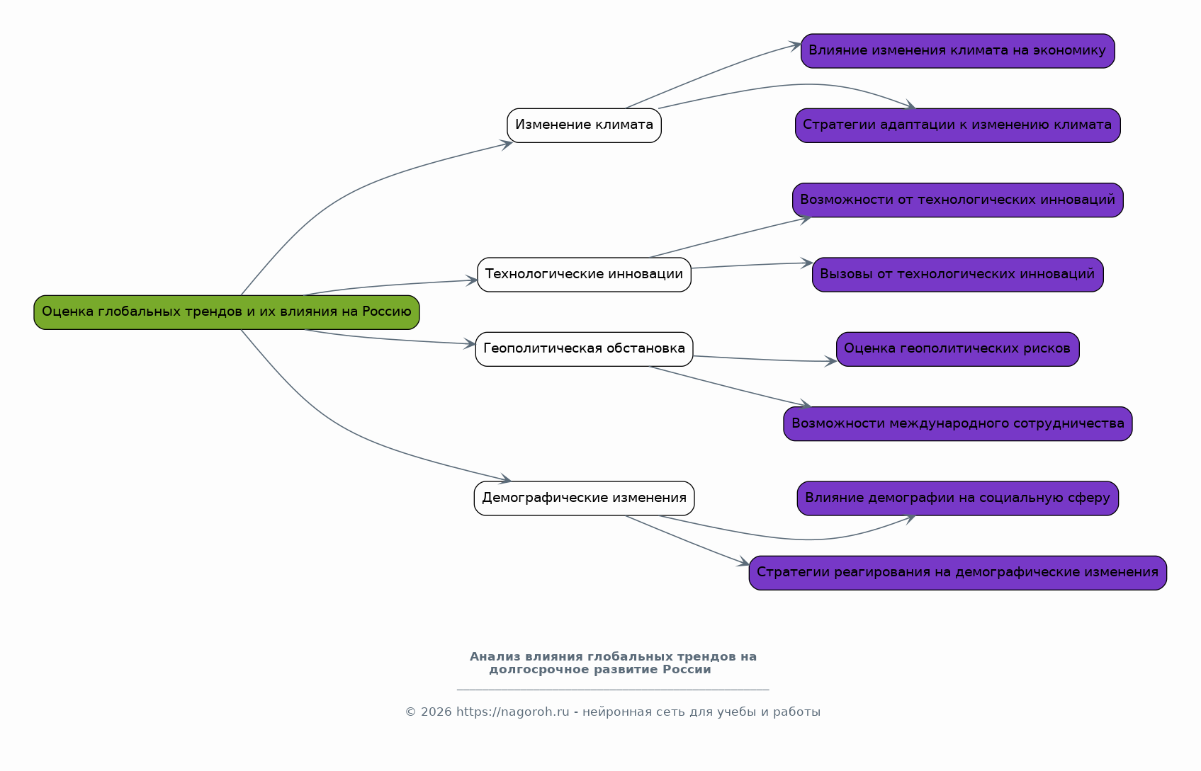Данный исследовательский проект охватывает широкий спектр вопросов, связанных с долгосрочным развитием Российской Федерации, уделяя особое внимание периоду до 2025 года и рассматривая перспективы на более отдаленное будущее. В рамках исследования будет проведен всесторонний анализ текущего состояния экономики, социальной сферы, политической системы и инфраструктуры. Особое внимание будет уделено выявлению ключевых приоритетов, факторов риска и возможностей для устойчивого развития страны. Проект предполагает использование различных методологических подходов, включая анализ статистических данных, экспертные оценки, сценарное планирование и сравнительный анализ лучших мировых практик. В описании будет проанализировано влияние глобальных трендов, таких как изменение климата, технологические инновации и геополитическая обстановка, на будущие траектории развития России. Результаты исследования могут быть полезны для разработки долгосрочных стратегий, корректировки государственных программ и принятия обоснованных решений в различных областях.