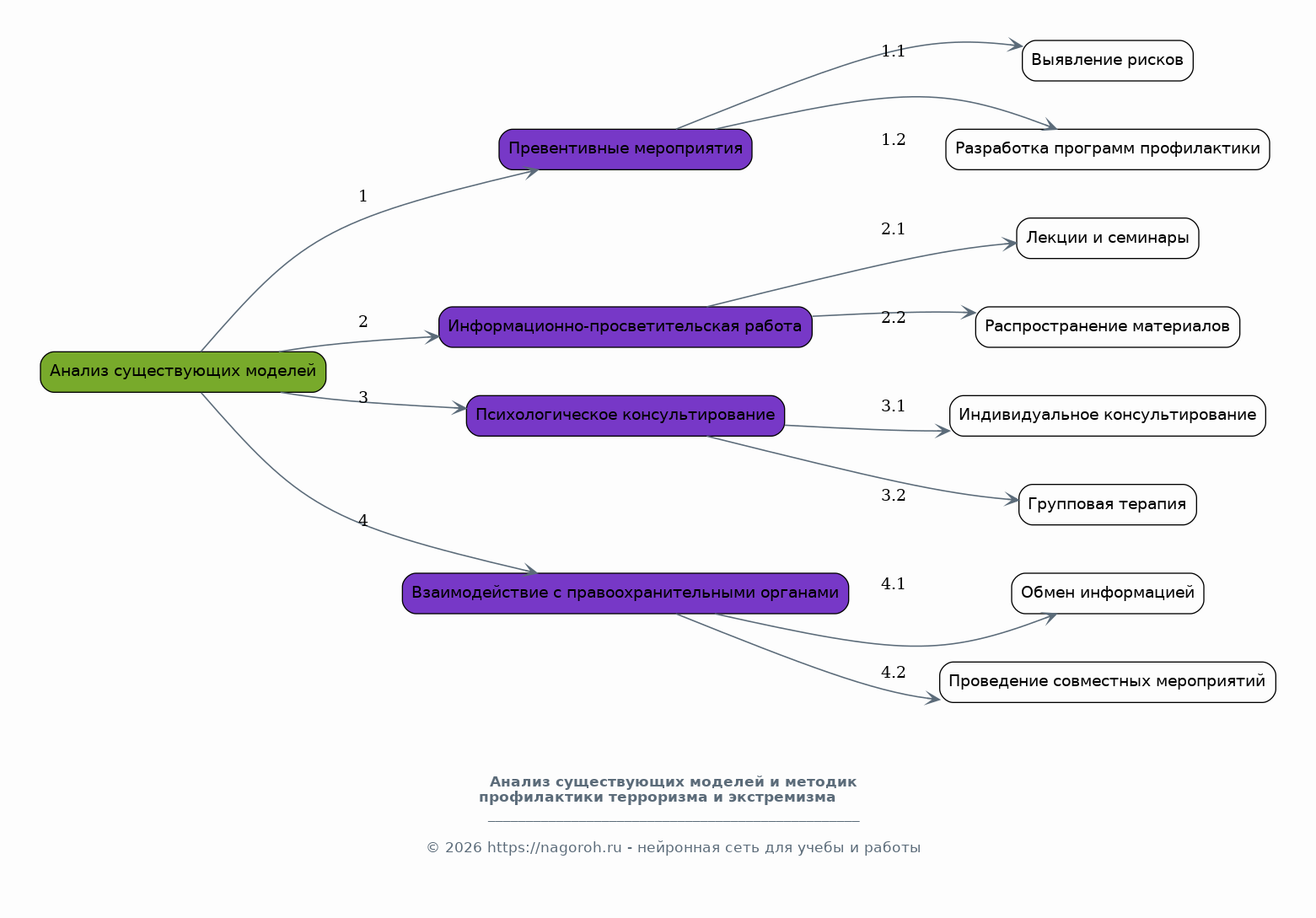 Данный исследовательский проект направлен на разработку и обоснование алгоритма взаимодействия образовательных организаций с субъектами профилактики терроризма и экстремизма. Проект предполагает комплексный анализ нормативно-правовой базы, регулирующей данную сферу, выявление проблем и барьеров в существующей практике, а также разработку рекомендаций по повышению эффективности взаимодействия. В рамках исследования будет проведен анализ существующих моделей и методик профилактики терроризма и экстремизма, с учетом специфики образовательных организаций. Особое внимание будет уделено разработке критериев оценки эффективности предложенного алгоритма и механизмов его внедрения. Исследование предполагает междисциплинарный подход, сочетающий в себе элементы педагогики, юриспруденции, психологии и социологии. Результаты исследования будут представлены в форме практических рекомендаций и методических материалов для образовательных организаций, а также могут быть использованы для совершенствования региональных и федеральных программ профилактики терроризма и экстремизма. Проект нацелен на повышение уровня безопасности в образовательных учреждениях и снижение рисков вовлечения обучающихся в деструктивную деятельность.