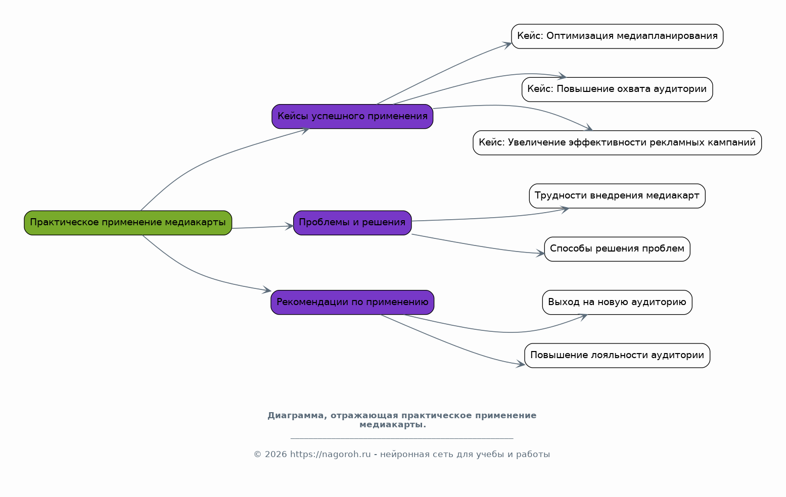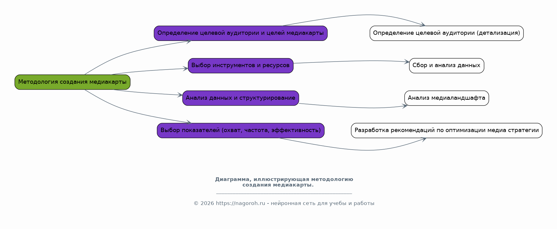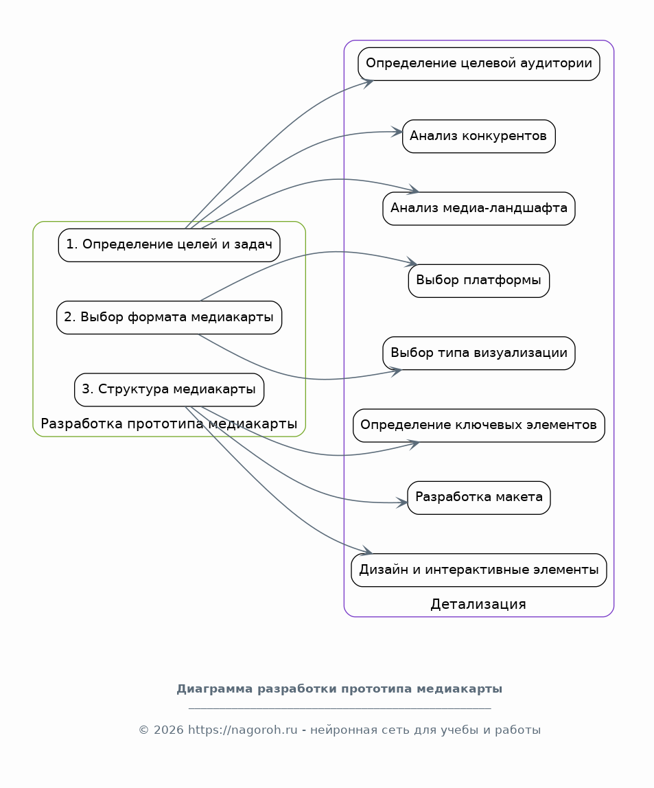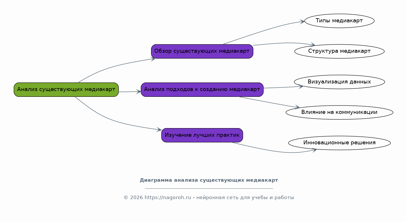 Проект направлен на разработку медиакарты для средств массовой информации (СМИ). Медиакарта представляет собой инструмент для стратегического планирования, визуализации информационного ландшафта, анализа аудитории и выбора оптимальных каналов коммуникации. В рамках данного проекта будет проведен анализ существующих медиакарт, выявлены их сильные и слабые стороны, а также разработана методология создания эффективной медиакарты, адаптированной к потребностям конкретных СМИ. В процессе работы над проектом будет уделено внимание как теоретическим основам медиапланирования и медиаизмерений, так и практическим аспектам разработки медиакарты, включая выбор инструментов, сбор данных, визуализацию информации и интерпретацию результатов. Особое внимание будет уделено формированию рекомендаций по использованию медиакарты для повышения эффективности коммуникационных стратегий, увеличения охвата аудитории и оптимизации рекламных кампаний. Конечным результатом проекта станет практическое руководство по созданию медиакарт, включающее шаблоны, примеры и рекомендации.