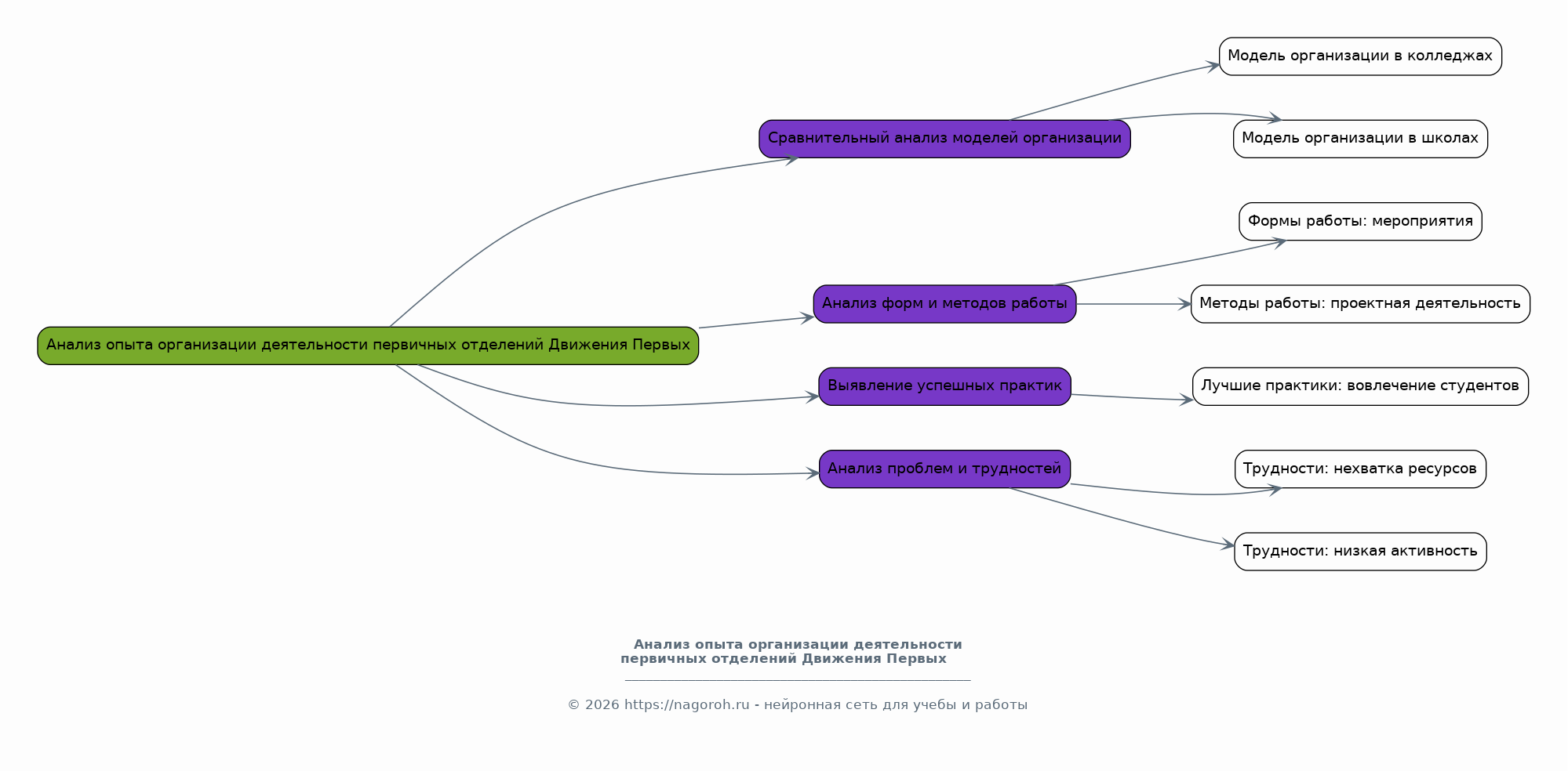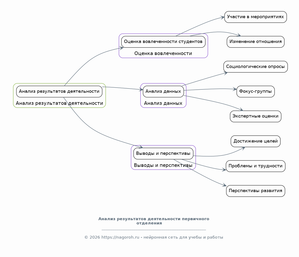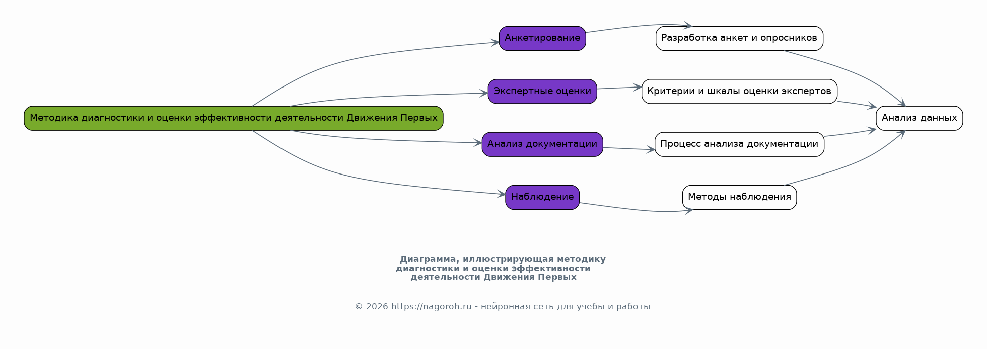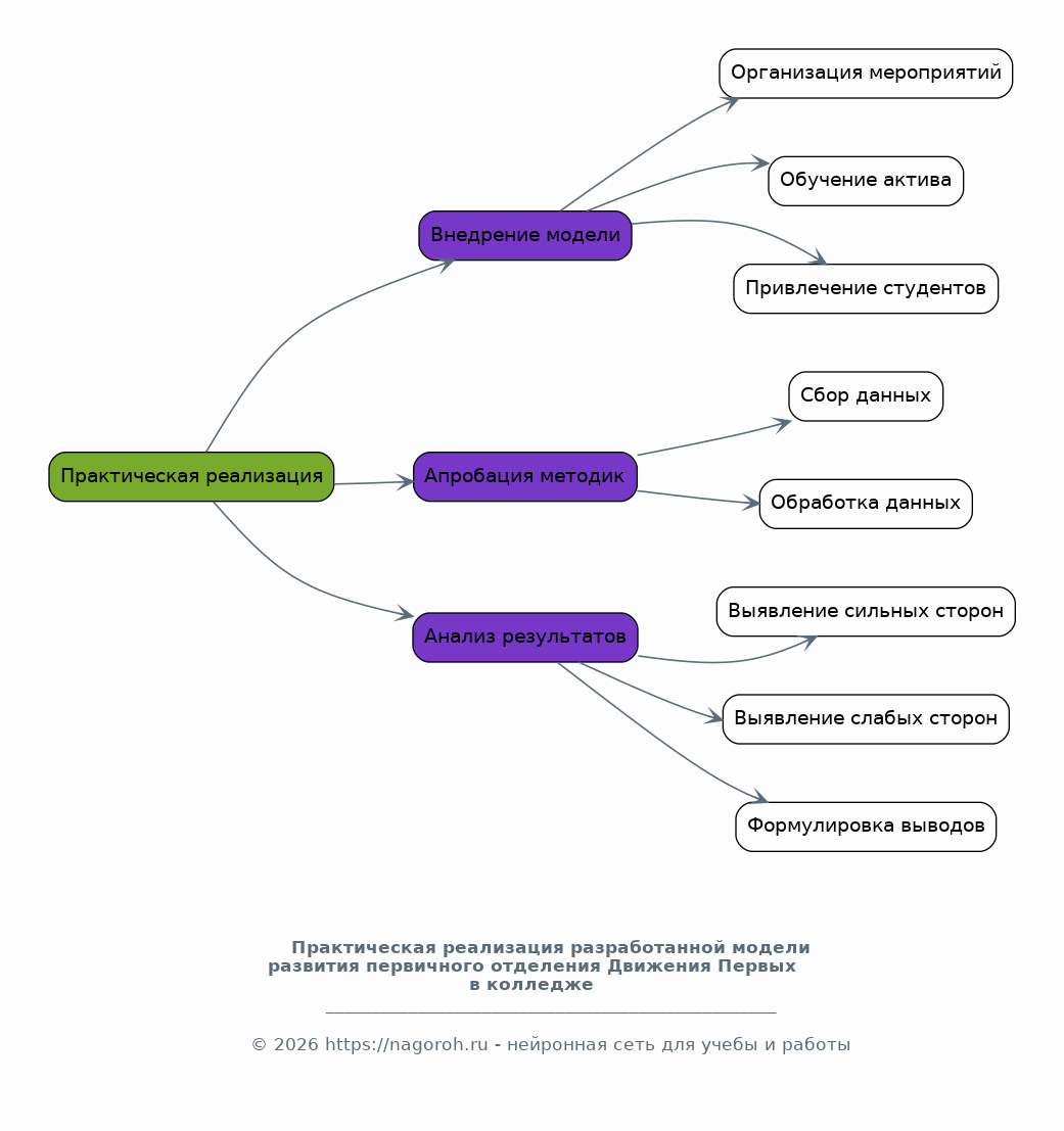 В данном разделе рассматриваются методики диагностики эффективности деятельности Движения Первых в колледже. Анализируются существующие методики оценки, такие как анкетирование, экспертные оценки, анализ документации, наблюдение, и адаптируются к специфике деятельности первичного отделения. Рассматриваются критерии и показатели эффективности, такие как количество вовлеченных студентов, участие в мероприятиях, уровень удовлетворенности деятельностью, изменение гражданской активности студентов и др. Предлагается разработанная система оценки, включающая конкретные инструменты и механизмы сбора данных, обработки и анализа.