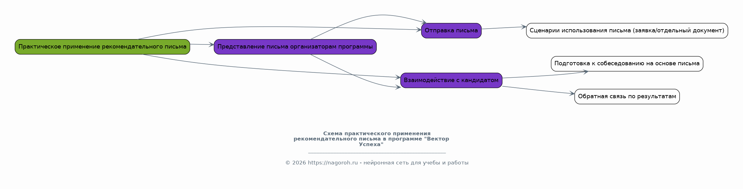 Данный проект представляет собой детальное рекомендательное письмо, предназначенное для поддержки кандидатов, претендующих на участие в программе «Вектор Успеха». Проект направлен на предоставление всесторонней оценки профессиональных и личностных качеств кандидата, а также на обоснование его перспектив в рамках программы. Письмо составляется на основе анализа резюме, портфолио, результатов собеседований и других данных, предоставленных кандидатом и/или полученных от третьих лиц. Особое внимание уделяется выявлению сильных сторон кандидата, его мотивации, опыта работы и потенциала для достижения успеха в выбранной области. Проект предполагает структурированное изложение информации, подчеркивающее соответствие кандидата требованиям программы и его способность эффективно участвовать в ее мероприятиях. Целью проекта является создание убедительного и информативного документа, повышающего шансы кандидата на прохождение отбора. В рамках данного проекта будут учтены все предоставленные данные о кандидате, а также специфика программы «Вектор Успеха» для создания наиболее релевантного и эффективного рекомендательного письма.
