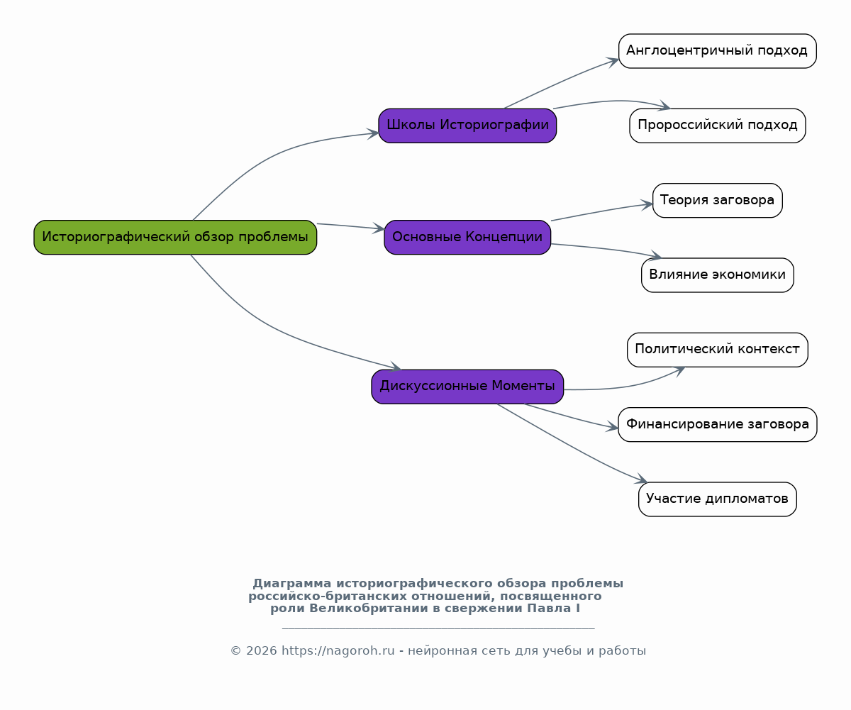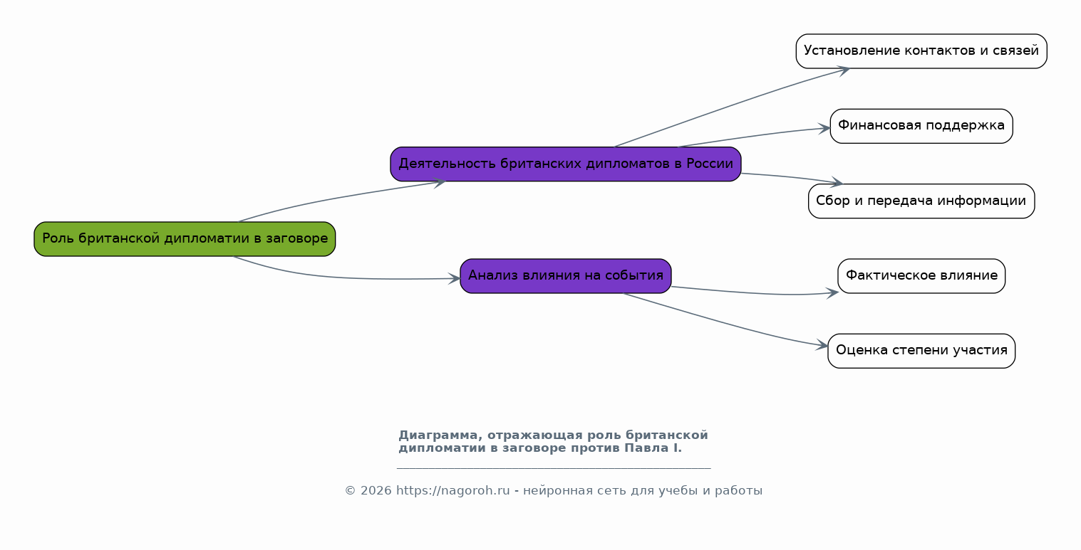 Данный исследовательский проект посвящен комплексному анализу роли Британской империи в событиях, приведших к свержению и убийству российского императора Павла I в 1801 году. В работе будут рассмотрены как отечественные, так и зарубежные историографические подходы к проблеме, а также критически проанализированы имеющиеся исторические источники – переписка, мемуары, дипломатические депеши – на предмет их достоверности и интерпретации. Особое внимание будет уделено выявлению степени осведомленности и участия английских дипломатов и влиятельных кругов в подготовке дворцового переворота, а также исследованы альтернативные версии событий, предлагаемые различными историками. Задача проекта — представить наиболее объективную картину роли Великобритании в этом ключевом эпизоде российской и европейской истории.