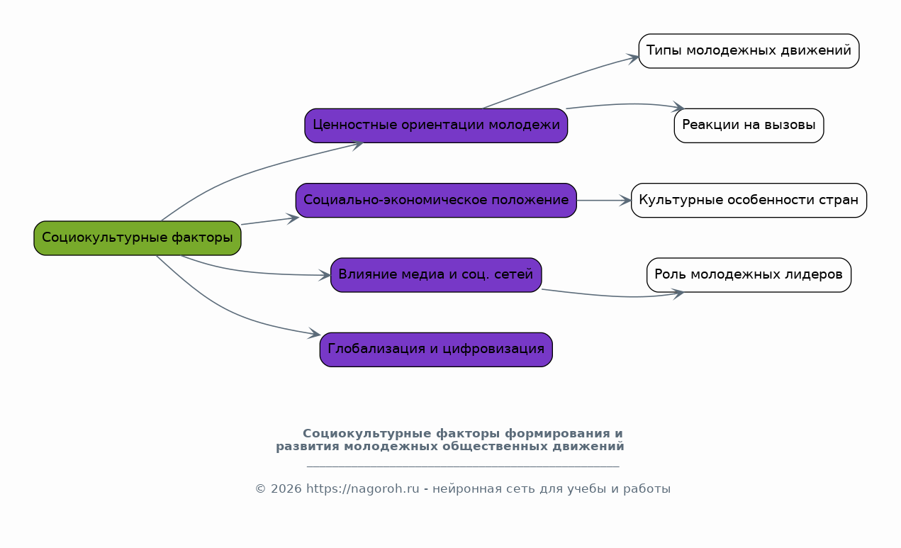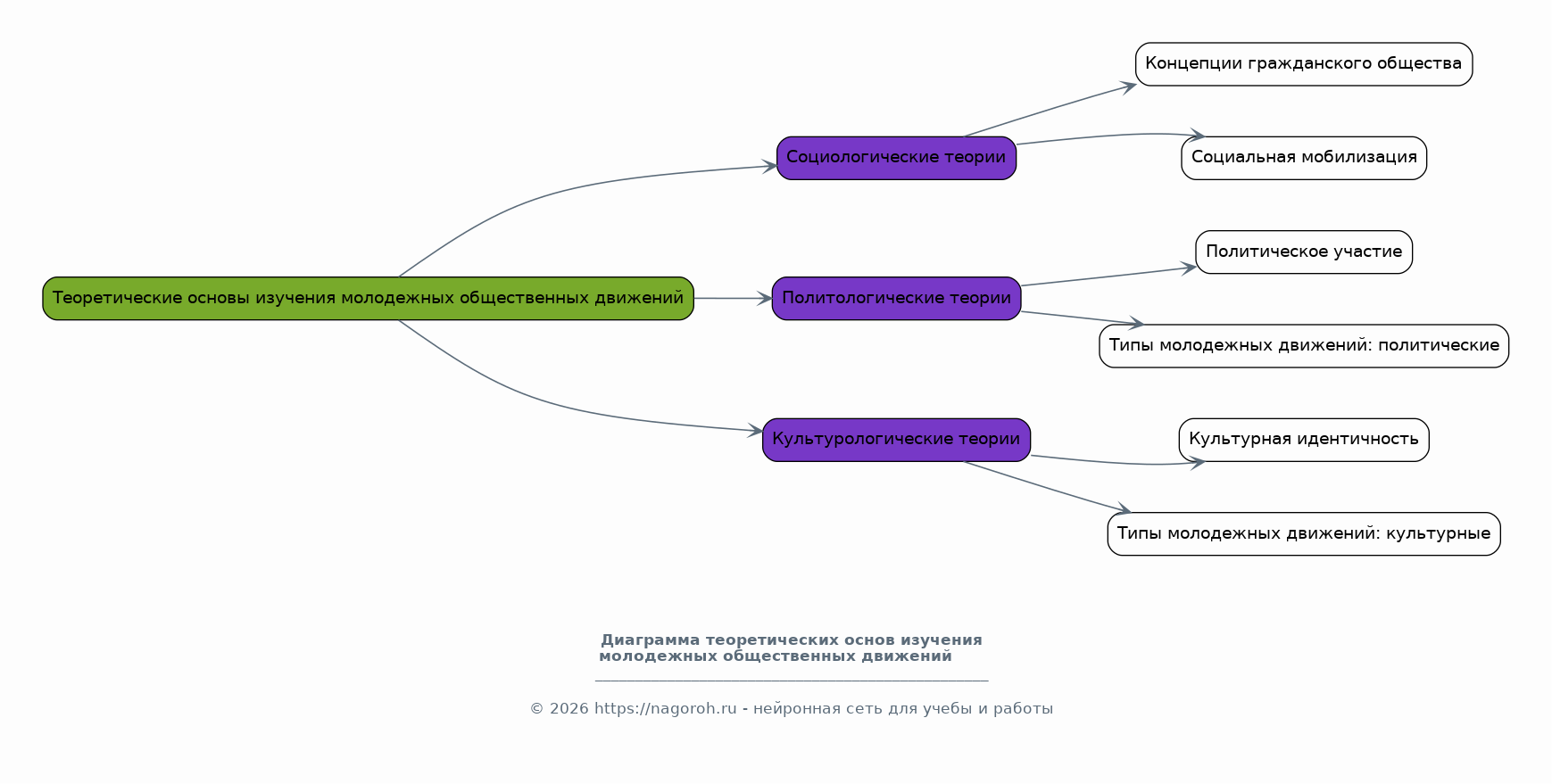 В этом разделе анализируются основные теоретические подходы к изучению молодежных общественных движений, включая социологические, политологические и культурологические теории. Анализируются концепции гражданского общества, социальной мобилизации, политического участия и культурной идентичности. Рассматриваются различные типы молодежных движений, их цели, ценности, организационные структуры, а также методы и формы деятельности. Особое внимание уделяется анализу социокультурных факторов, влияющих на формирование и развитие молодежных движений. Также изучаются исторические аспекты возникновения и эволюции молодежных движений в различных социокультурных контекстах, анализируется их роль в социальных изменениях и политических процессах, и рассматриваются различные типы молодежных движений: политические, экологические, культурные, социальные. Включаются обсуждения их влияния на общественное мнение, а также проблемы, с которыми они сталкиваются.