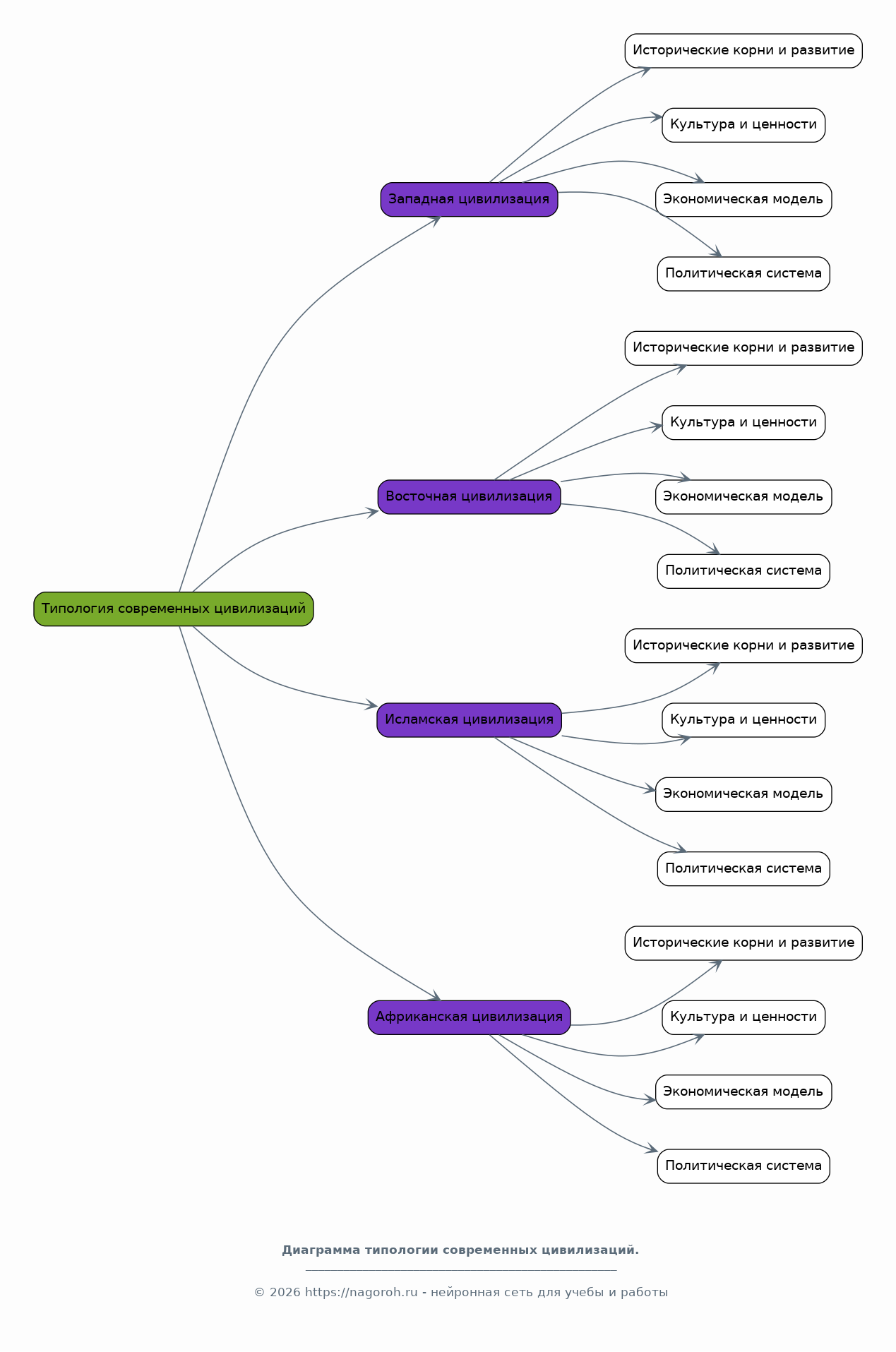 Данный исследовательский проект посвящен всестороннему анализу современных цивилизаций, их типологии, ключевых характеристик и динамики развития. В рамках проекта будет рассмотрен широкий спектр цивилизаций, включая западную, восточную, исламскую, африканскую и другие, с целью выявления общих черт, различий, а также основных тенденций, определяющих их будущее. Особое внимание будет уделено факторам, влияющим на формирование и эволюцию цивилизаций в условиях глобализации, технологического прогресса и изменений в геополитическом ландшафте. Проект предполагает изучение исторических аспектов становления цивилизаций, анализ современных вызовов и возможностей, а также прогнозирование возможных сценариев развития. Будут исследованы различные подходы к классификации цивилизаций, включая культурные, экономические, политические и технологические критерии. В результате будет сформировано целостное представление о многообразии и взаимосвязи современных цивилизаций, а также о влиянии различных факторов на их дальнейшее развитие.
