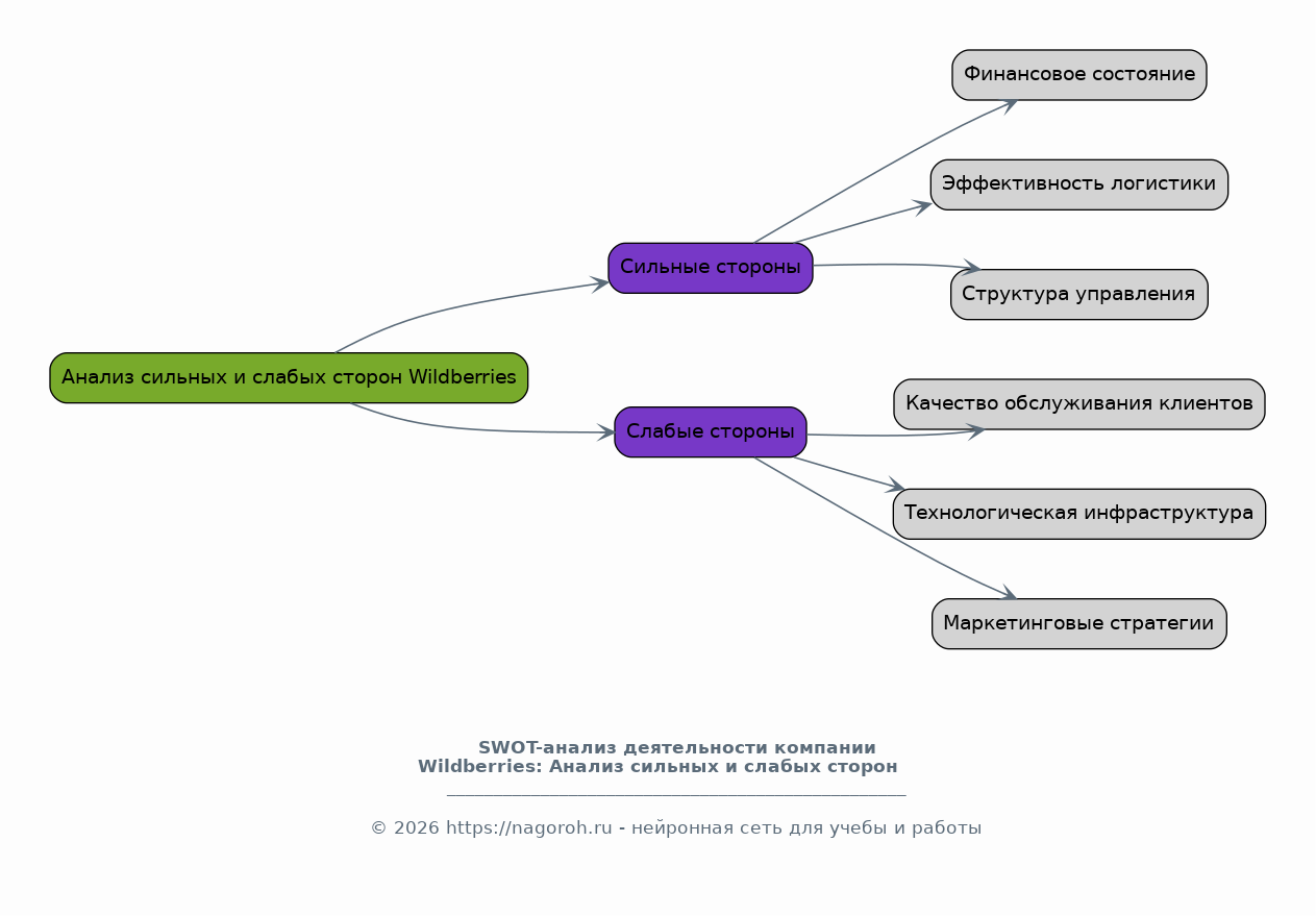 В этом разделе проводится глубокий анализ внутренних факторов, определяющих деятельность Wildberries, с целью выявления ее сильных и слабых сторон. Анализируются различные аспекты компании, такие как финансовое состояние, эффективность логистики, структура управления, качество обслуживания клиентов, технологическая инфраструктура, маркетинговые стратегии, бренд и репутация. Для каждой из этих областей проводятся детальные исследования, включающие анализ данных, экспертные оценки и сравнительный анализ с конкурентами. Выявляются конкретные преимущества, которые позволяют Wildberries удерживать лидирующие позиции на рынке, а также недостатки, требующие улучшения.