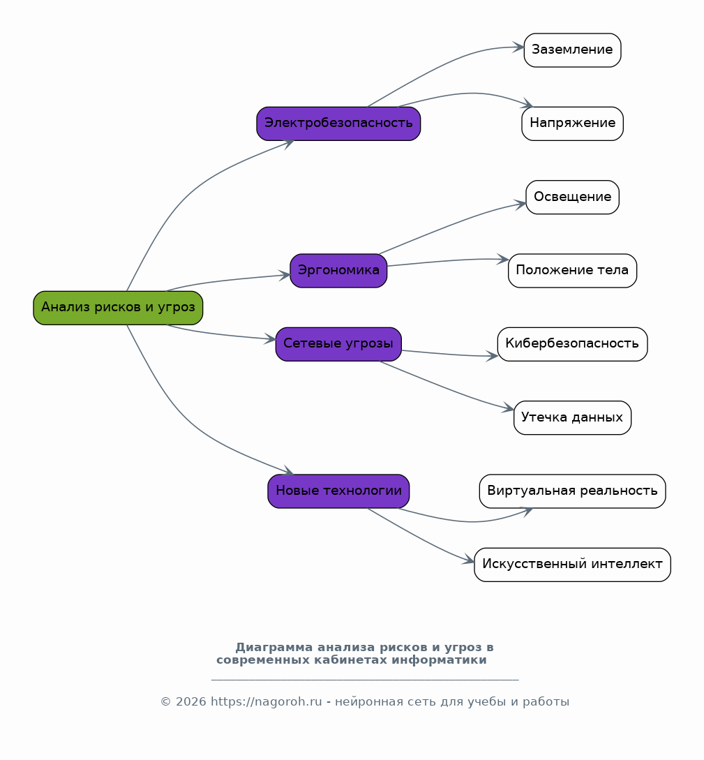 Детальный анализ современных рисков и угроз, связанных с использованием компьютерной техники и информационных технологий в кабинетах информатики. Рассмотрение потенциальных опасностей, связанных с электробезопасностью, эргономикой, использованием химических веществ и пожарной безопасностью. Анализ рисков, связанных с сетевыми технологиями, включая угрозы кибербезопасности и утечки данных. Изучение влияния новых технологий, таких как виртуальная реальность и искусственный интеллект, на безопасность. Обзор факторов, влияющих на возникновение рисков, и поиск способов их минимизации. Оценка частоты возникновения различных инцидентов и их последствий.