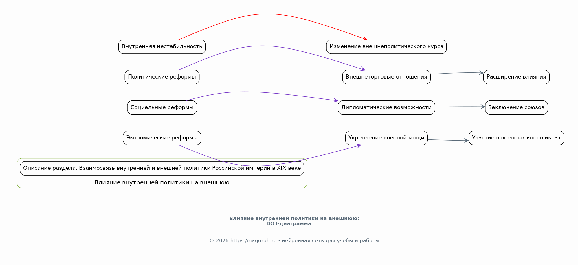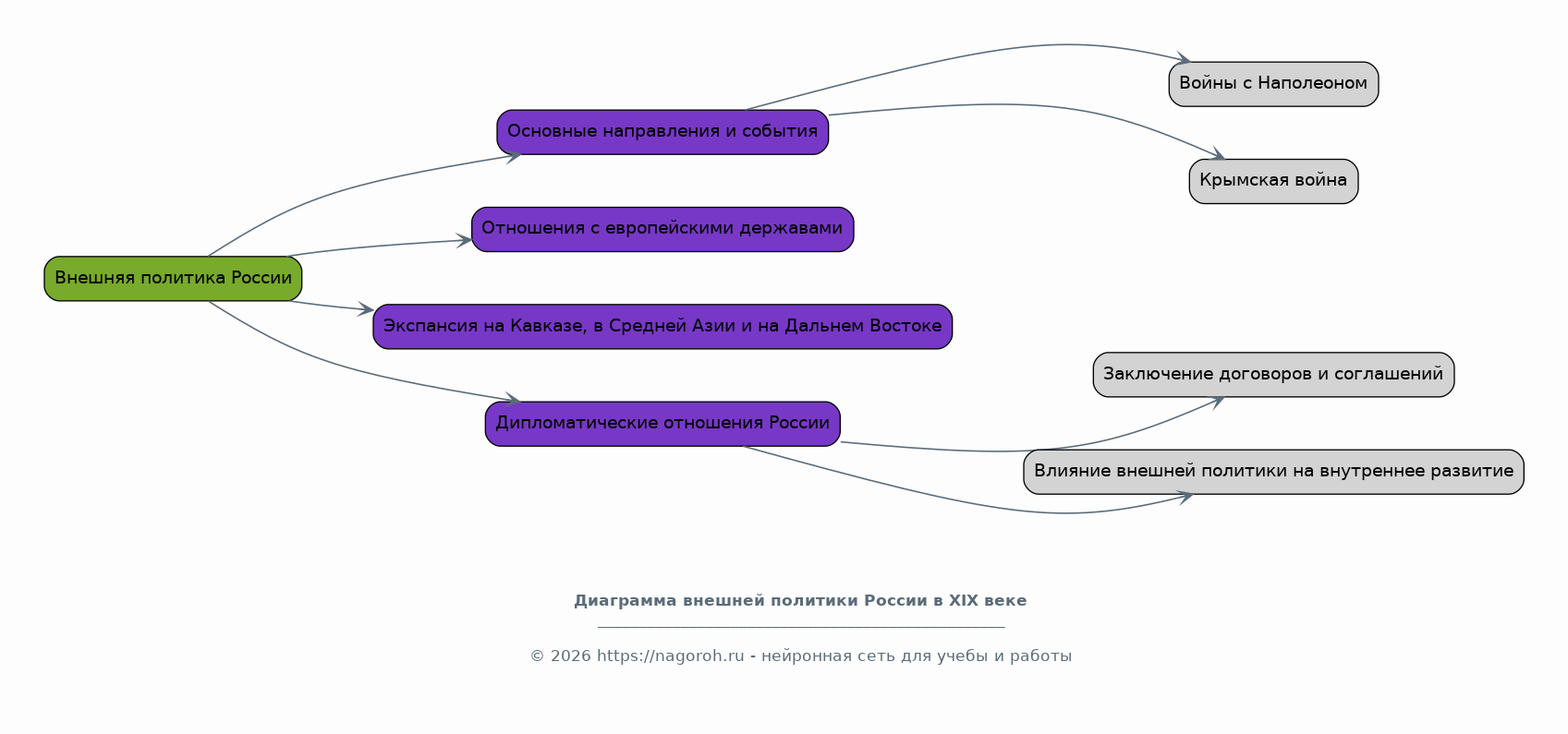 Данный исследовательский проект посвящен всестороннему изучению внутренней и внешней политики Российской империи в течение XIX столетия. Проект предполагает глубокий анализ ключевых политических процессов, значимых реформ, социально-экономических изменений, а также международной деятельности России в рассматриваемый период. Особое внимание будет уделено влиянию политических решений на различные сферы жизни общества, включая государственное устройство, экономику, социальную структуру и культурное развитие. В рамках исследования будут проанализированы основные направления внешней политики, такие как участие в европейских коалициях, экспансия на Кавказе и в Средней Азии, а также отношения с другими державами. Проект нацелен на выявление причинно-следственных связей между внутренними изменениями и внешней политикой, а также на оценку долгосрочных последствий принятых политических решений для будущего России.