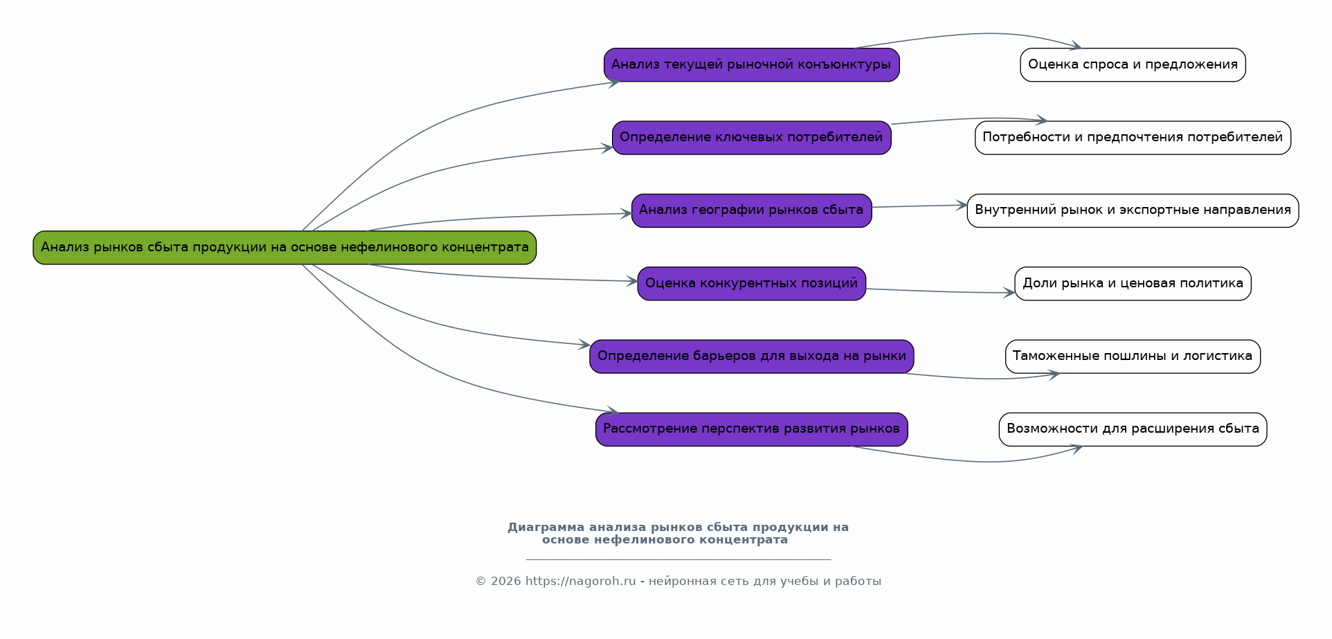 В данном разделе будет проведен всесторонний анализ рынков сбыта продукции, произведенной на основе нефелинового концентрата. Будет проведен анализ текущей рыночной конъюнктуры, включая оценку спроса и предложения на продукты, такие как глинозем, цемент, стекло и другие. Определены ключевые потребители продукции, произведенной на основе НК, их потребности и предпочтения, а также факторы, влияющие на их выбор. Проведен анализ географии рынков сбыта, включая внутренний рынок России и экспортные направления. Оценены конкурентные позиции основных производителей продукции на основе нефелинового концентрата, их доли рынка, ценовая политика и стратегии продвижения. Определены возможные барьеры для выхода на рынки сбыта, такие как таможенные пошлины, логистические трудности, требования к качеству продукции. Рассмотрены перспективы развития рынков и возможности для расширения сбыта.