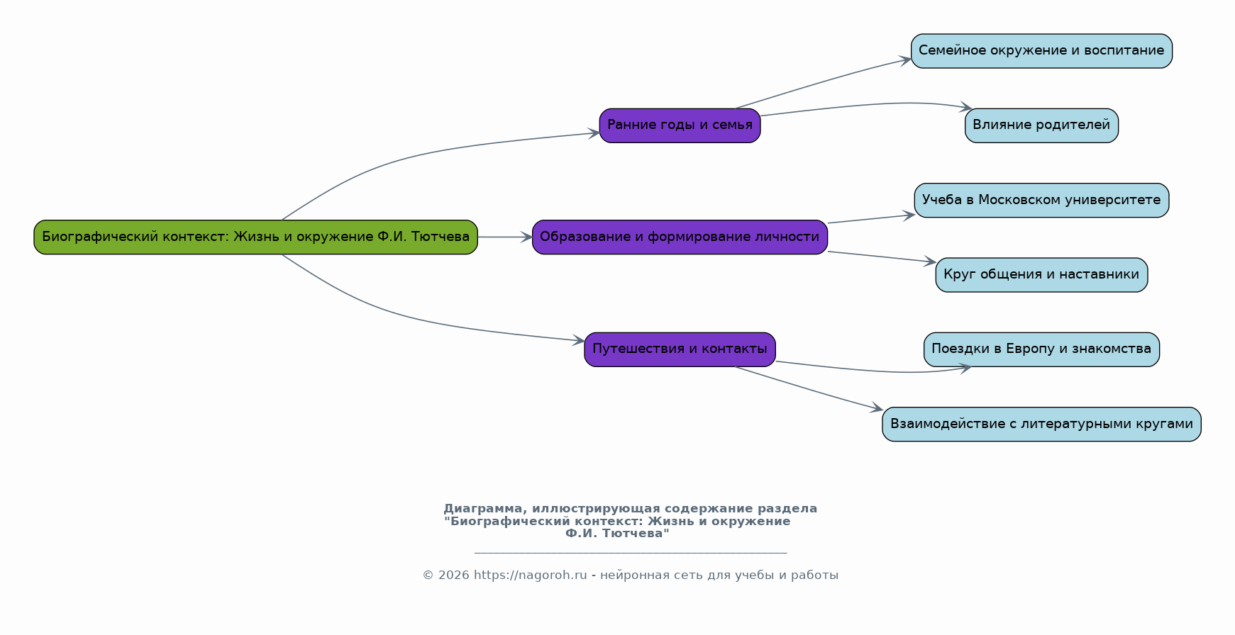 Данный исследовательский проект посвящен изучению жизни и творчества выдающегося русского поэта Фёдора Ивановича Тютчева. Работа охватывает основные этапы биографии поэта, его философские взгляды, отраженные в лирике, а также анализ ключевых тем и мотивов, характерных для его поэзии. Особое внимание уделяется влиянию личности и мировоззрения Тютчева на формирование его поэтического стиля и места поэта в контексте русской литературы XIX века. Проект основывается на анализе биографических материалов, литературно-критических исследований, а также непосредственном изучении поэтических произведений Тютчева. Цель работы – всестороннее изучение и интерпретация творческого наследия Ф.И. Тютчева и выявление его значимости для русской и мировой культуры.