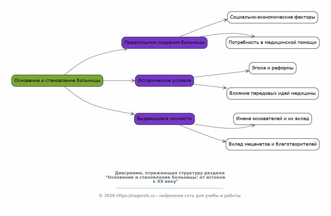 Этот раздел посвящен периоду основания и раннему развитию больницы, охватывая ключевые события и факторы, повлиявшие на её формирование. Будут рассмотрены предпосылки создания больницы, исторические условия и выдающиеся личности, стоявшие у истоков. Проанализированы первые годы работы больницы, ее структура, финансирование и медицинский персонал. Будут исследованы основные достижения и проблемы, с которыми столкнулась больница на начальном этапе своего существования. Цель – понять, как формировалась больница, как медицинское учреждение.
