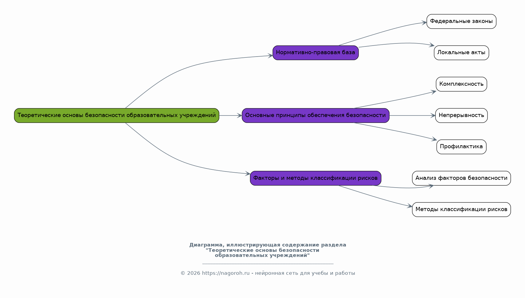 Этот раздел посвящен рассмотрению теоретических аспектов безопасности образовательных учреждений. Анализируются нормативно-правовая база, регулирующая вопросы безопасности, включая федеральные законы и локальные акты. Рассматриваются основные принципы обеспечения безопасности, такие как комплексность, непрерывность и профилактика. Особое внимание уделяется анализу факторов, влияющих на безопасность образовательной среды, и методам их классификации для более эффективного управления рисками.