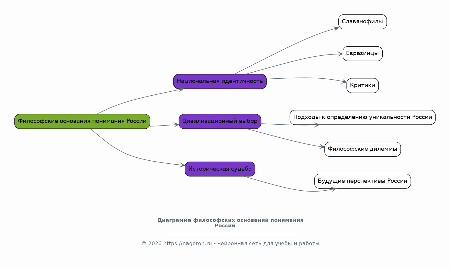 Этот раздел реферата посвящен анализу философских оснований, лежащих в основе понимания России. Рассматриваются ключевые концепции, такие как национальная идентичность, цивилизационный выбор и историческая судьба. Исследуются взгляды выдающихся российских философов, таких как славянофилы и евразийцы, а также их критики. Анализируются различные подходы к определению уникальности России, ее места в мире и ее будущих перспектив. Выявляются основные философские дилеммы, влияющие на формирование образа России.