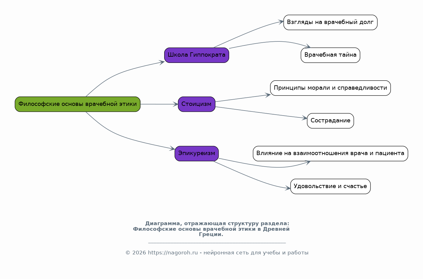 Этот раздел посвящен анализу философских учений, оказавших влияние на формирование врачебной этики в Древней Греции. Будут рассмотрены взгляды различных философских школ, таких как школа Гиппократа, стоицизм и эпикуреизм, на вопросы морали, справедливости и сострадания. Особое внимание будет уделено влиянию этических принципов этих школ на формирование представлений о врачебном долге, взаимоотношениях врача и пациента, а также на понимание врачебной тайны. Анализ философских концепций позволит лучше понять истоки этических норм современной медицины.